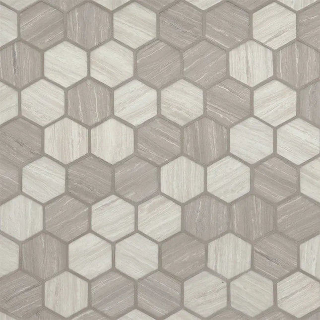 Description: Silva Oak 2” Hexagon Mosaic Tile is traditional in shape but modernized in its trendy blend of grays, ranging from rich to sun-bleached, blended in an interlocking mosaic that evokes the classic elegance of ancient mosaic tilework. This 6mm thick modern glass hexagon tile is easy to care for, stain resistant, and durable, and is suited for use as an accent wall or backsplash tile, countertop surface, or even as a flooring tile in residential applications. Primary Color(s) Gray-Light Material Type Recycled Glass Style Hexagon Collection Glass Mosaics Chips Per Sheet 48 Size 2" Hexagon Environmental Greenguard Gold, USGBC/LEED Additional Resources Disclaimer , Wet Cutting Countertops Residential: Yes Commercial: Yes Flooring Residential: Yes Commercial: No Wall Residential: Yes Commercial: Yes