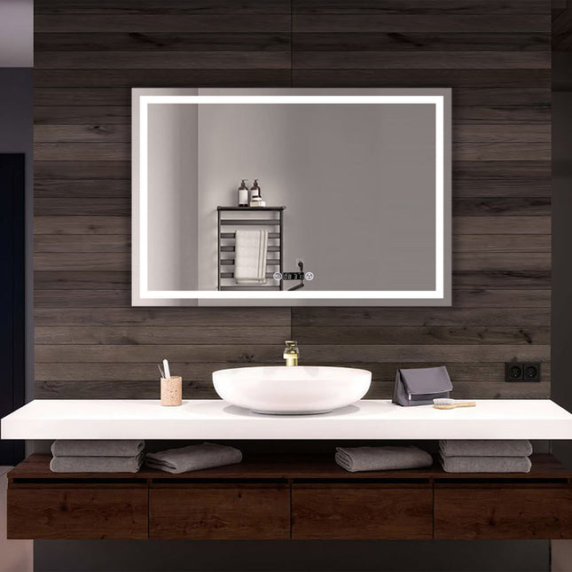 Cleo Embrace Bathroom LED Vanity Mirror w/ Built-in Bluetooth Speaker - MSL-105T Introducing our innovative LED mirror with an array of features to elevate your bathroom experience. Enjoy your favorite tunes while bathing with the built-in Bluetooth speaker, creating a soothing ambiance. Stay informed with real-time displays of both the time and room temperature, adding convenience to your daily routine. Customize your lighting with ease using the color temperature adjustable LED, ranging from warm 3000K to cool 5500K, ensuring optimal illumination for any task. The smart functionality offers full range stepless dimming and brightness memory, allowing you to set the perfect lighting every time. Experience seamless operation with the touch-on switch, featuring touchscreen keys with no switch-on delay for instant activation. Crafted from eco-friendly materials, including a 5mm high-resolution silver mirror and lead-free components, the mirror prioritizes sustainability without compromising on quality. Say goodbye to foggy mirrors with the built-in anti-fog function, ensuring clear visibility even in steamy environments. The durable frame, constructed from high-quality 6063 aluminum with an oxide coating, guarantees long-lasting performance and resistance to corrosion. Backed by a 30,000-hour LED lifespan and a 2-year warranty for parts, our LED mirror offers peace of mind and reliability for years to come. Transform your bathroom into a haven of relaxation and functionality with our feature-rich LED mirror today. Feature Description Bluetooth Speaker Enjoy music in the bath Time & Temp Displays Real-time display of time and room temperature Color Temp Adjustable LED color temperature varies from warm 3000K to cool 5500K Smart Full range stepless dimmable & brightness memory Touch-on Switch Touchscreen keys with no switch-on delay Eco-friendly Material 5mm high-resolution silver mirror, lead-free components Anti-fog Built-in anti-fog function Durable Frame High-quality 6063 aluminum frame with oxide coating Warranty 30,000hrs LED lifespan/2 years warranty for parts