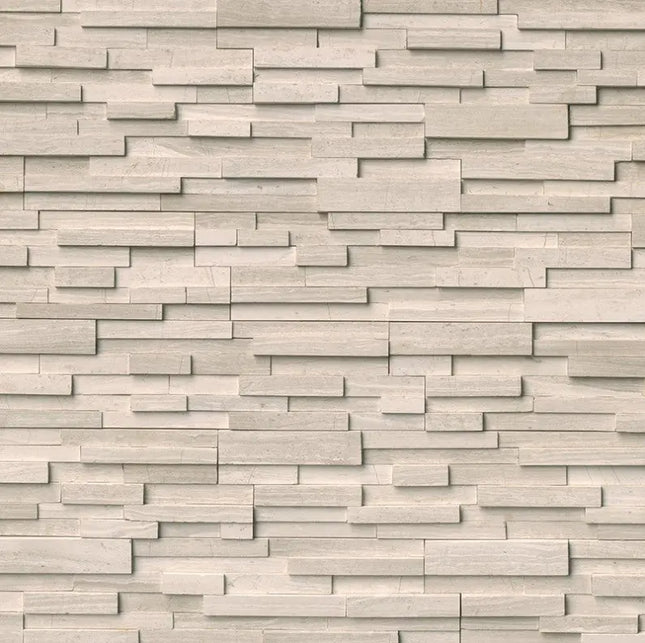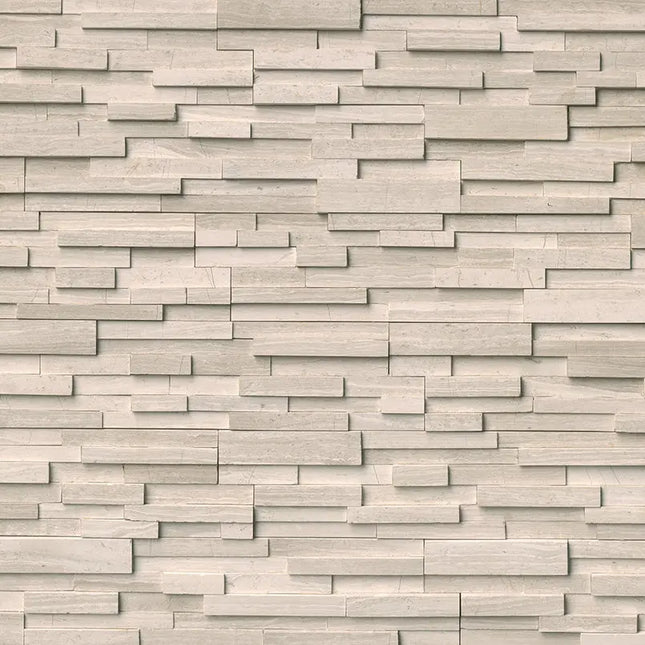 Description: White Oak 3D Stacked Stone panels feature off-white natural marble, with depth and dimension ranging from 3/4" to 1 1/4". Use to create stunning accent walls throughout the property. Suitable for backsplashes, fireplace surrounds, and exterior design projects. Use to clad architectural features including retaining walls, support beams, and more. Matching corners are available to finish off projects. Primary Color(s) White-Warm Material Type Marble Variations Medium Style 3D Available Finishes 3D Honed Grout Free Yes Environmental Greenguard Gold, USGBC/LEED Additional Resources Disclaimer , Prop65-SILICA, CPSC-SILICA Download Specs guide