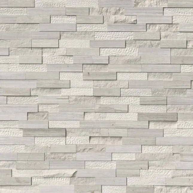 Description: A perfect blend of modern and natural is what you get with the beautiful White Oak Multi Finish Stacked Stone. This stacked stone features warm white tones that make this a perfect choice as an accent wall or a backsplash tile. Bring warmth and brightness to your space, and complement nearly any design style with this marble stacked stone look. Matching corner pieces allows you to create a seamless look in any space. Primary Color(s) White-Warm Material Type Marble Variations Medium Style 3D Available Finishes Misc,Multi Finish Grout Free Yes Environmental Greenguard Gold, USGBC/LEED Additional Resources Disclaimer , Prop65-SILICA, CPSC-SILICA
