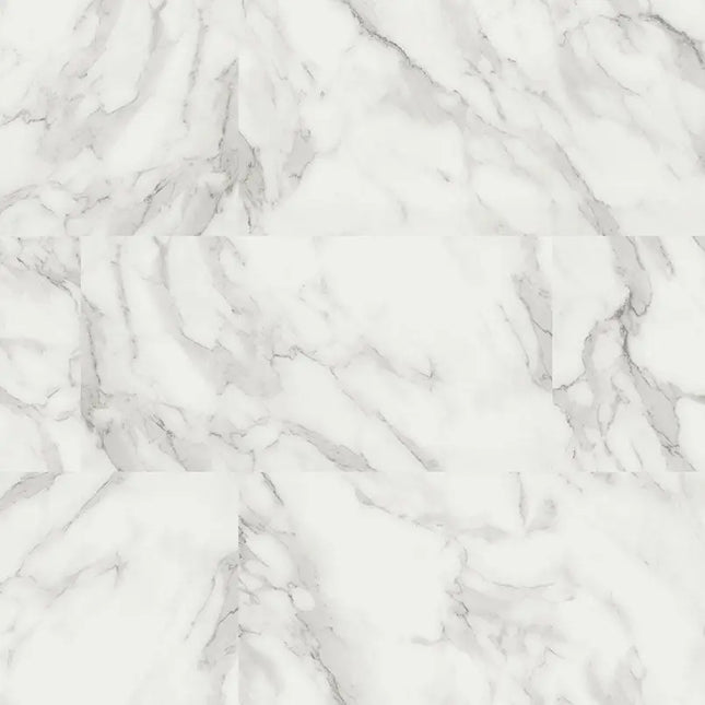 Description: A cool white background finely laced with silvery gray veins underscores the chic, sophisticated appearance of Carrara Avell® Luxury Vinyl Tile. This vinyl flooring offers the magnificence of natural stone but the durability and affordability of LVT. This 18x36 flooring is 100% waterproof and features CrystaLux™, a protection layer that provides durability and longevity, protecting against everyday wear. An innovative 1MM pre-attached backing offers sound protection and comfort underfoot. Carrara Avell is coated with PietraTech – an MSI exclusive polish that emulates smooth polished marble. It features a patented locking system for ease of installation. This rigid core flooring features “no acclimation” technology that enables buy today, install today convenience. Add some glamor to the bedroom, bathroom, kitchen, hallway, living room and beyond. See technical specification sheets for more details Series Name(s) XL Trecento Primary Color(s) White LVT Type Rigid Core Thickness 5MM Zero Acclimation Yes Style Marble Shade Variations LOW Wear Layer 12MIL Environmental NSF Certified, Greenguard Gold, FloorScore, USGBC LEED Certified Radiant Heating YES - See Installation Instructions for Details Warranty Limited Residential Lifetime; 10 Year Light Commercial Additional Resources Disclaimer Flooring Residential: Yes Commercial: Yes This color is also available in the following collections: Trecento Size: 12x24 /12MIL Thickness: 5MM Bevel: Standard VIEW ITEM