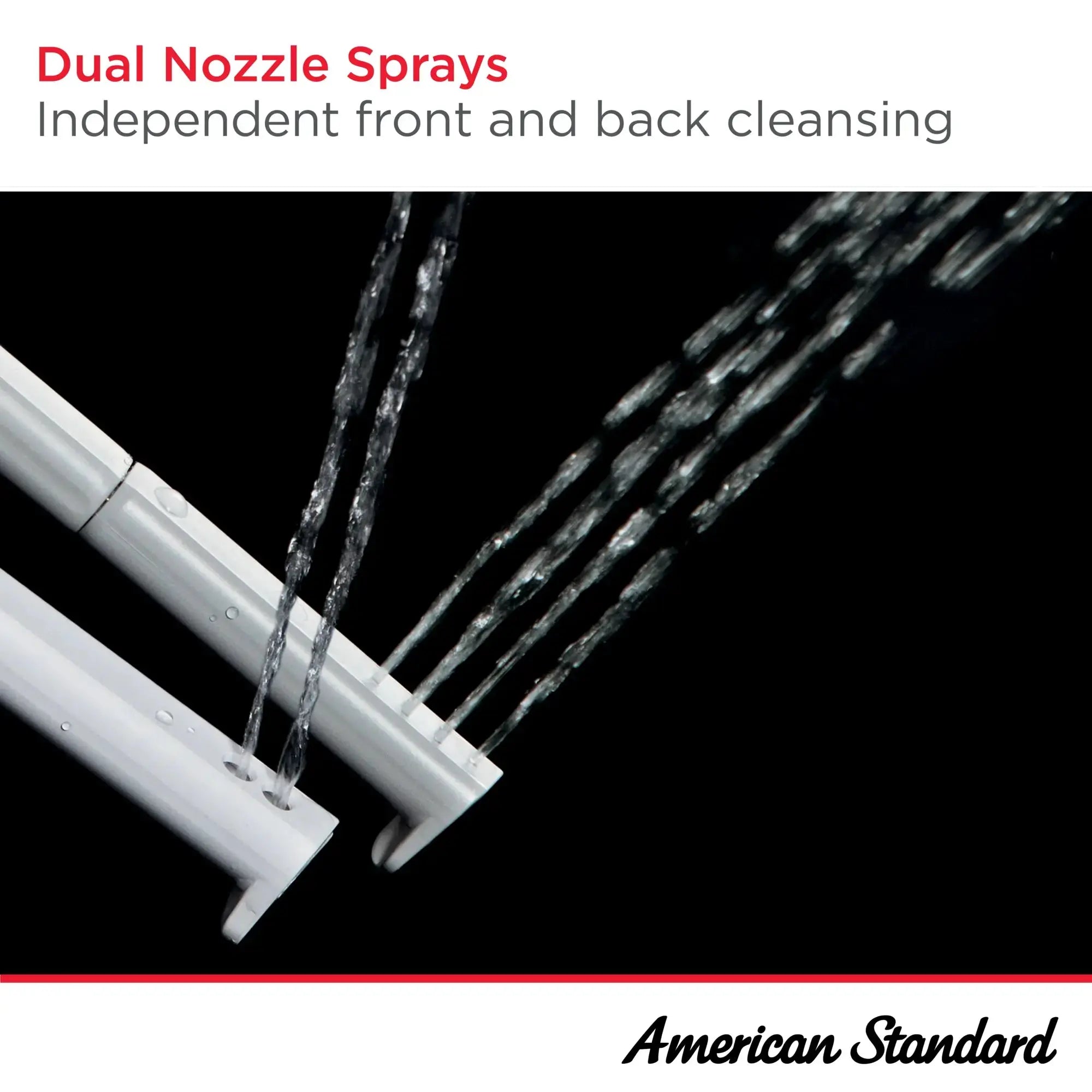 - CONFIDENT CLEANSING AND HYGIENE: Dual nozzles, with adjustable spray volume, work independently to thoroughly clean front and back, and feature removable tips and shutter for added hygiene