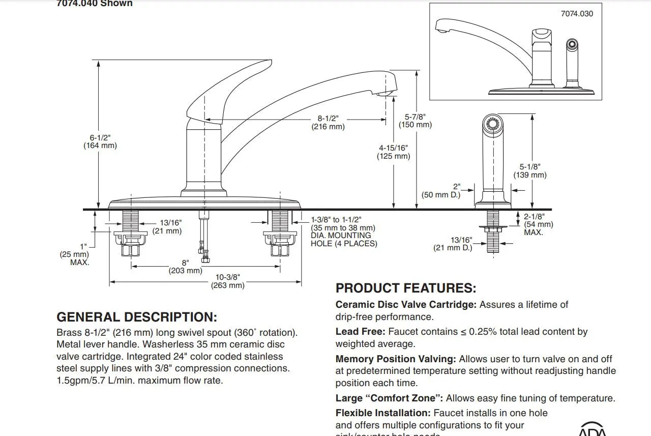 American Standard Colony PRO Single-Handle Kitchen Faucet 1.5 gpm/5.7 L/min With Side Spray