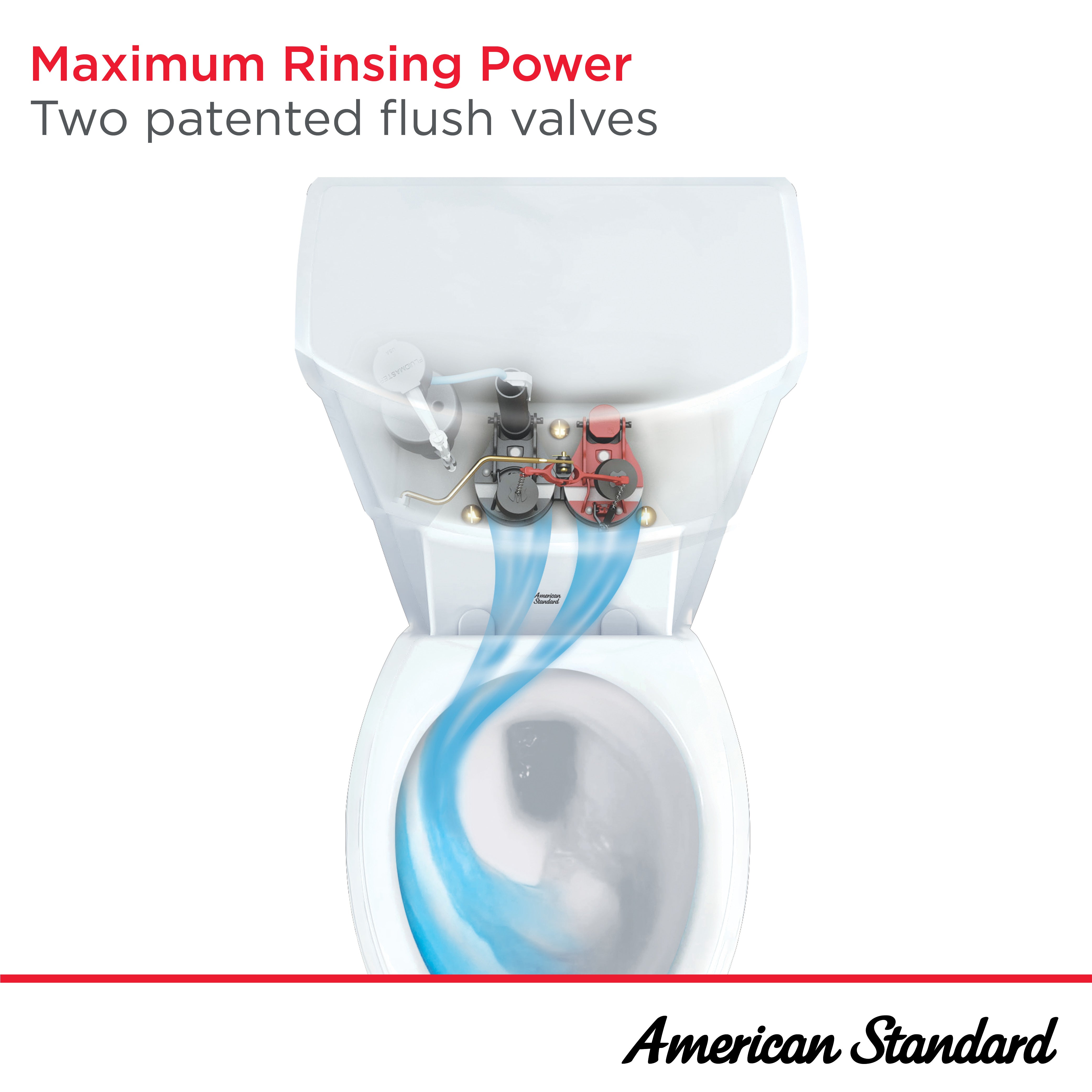 - POWERFUL FLUSH - Patented flush technology sends twice as much jetted water to the rim