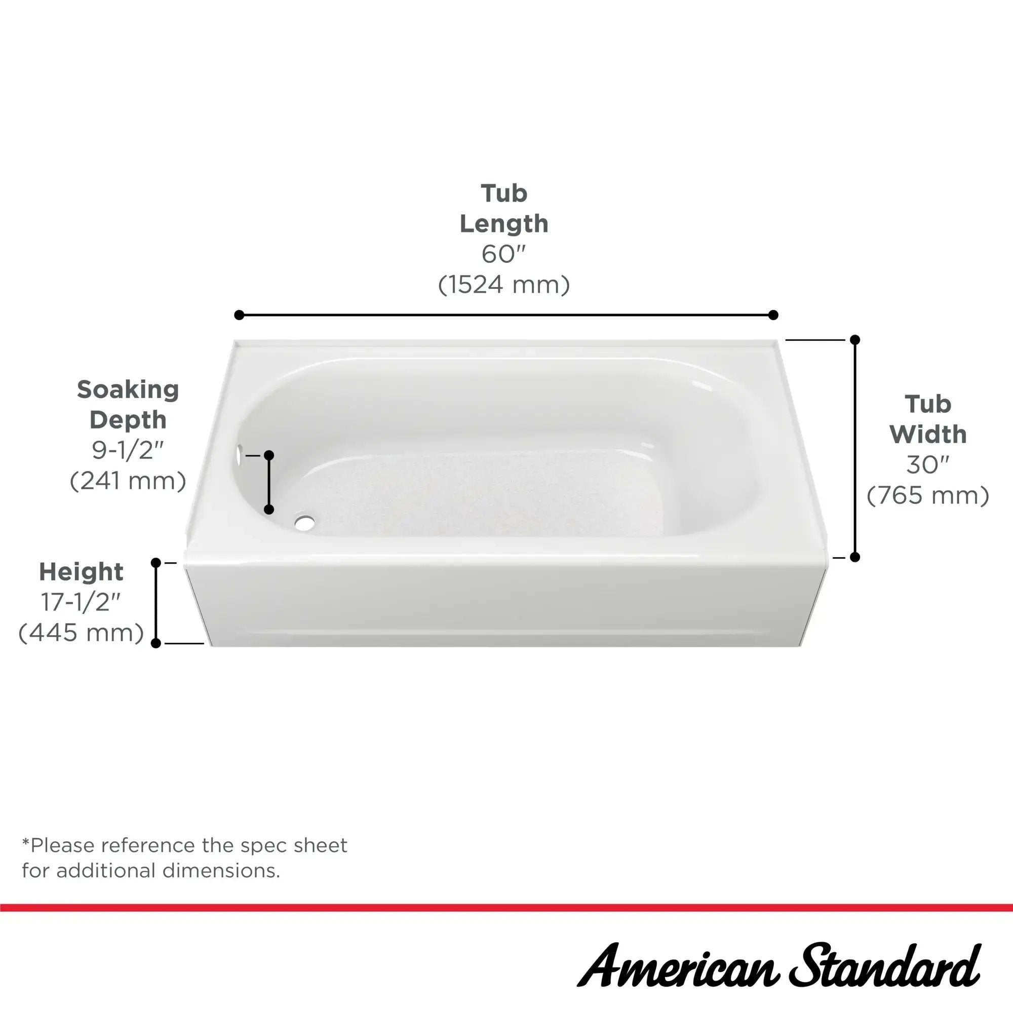 American Standard Princeton PRO Steel 60 x 30-inch Above Floor Rough Integral Apron Bathtub