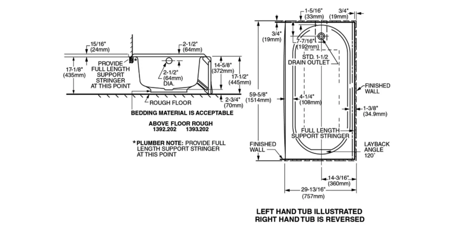 - Bathing comfort: Features comfortable 9 ½” water depth