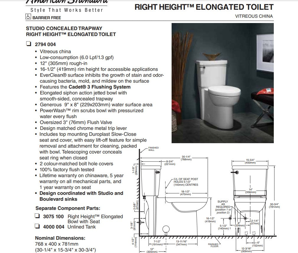 American Standard Studio Concealed 1.6 Elongated Toilet with Seat