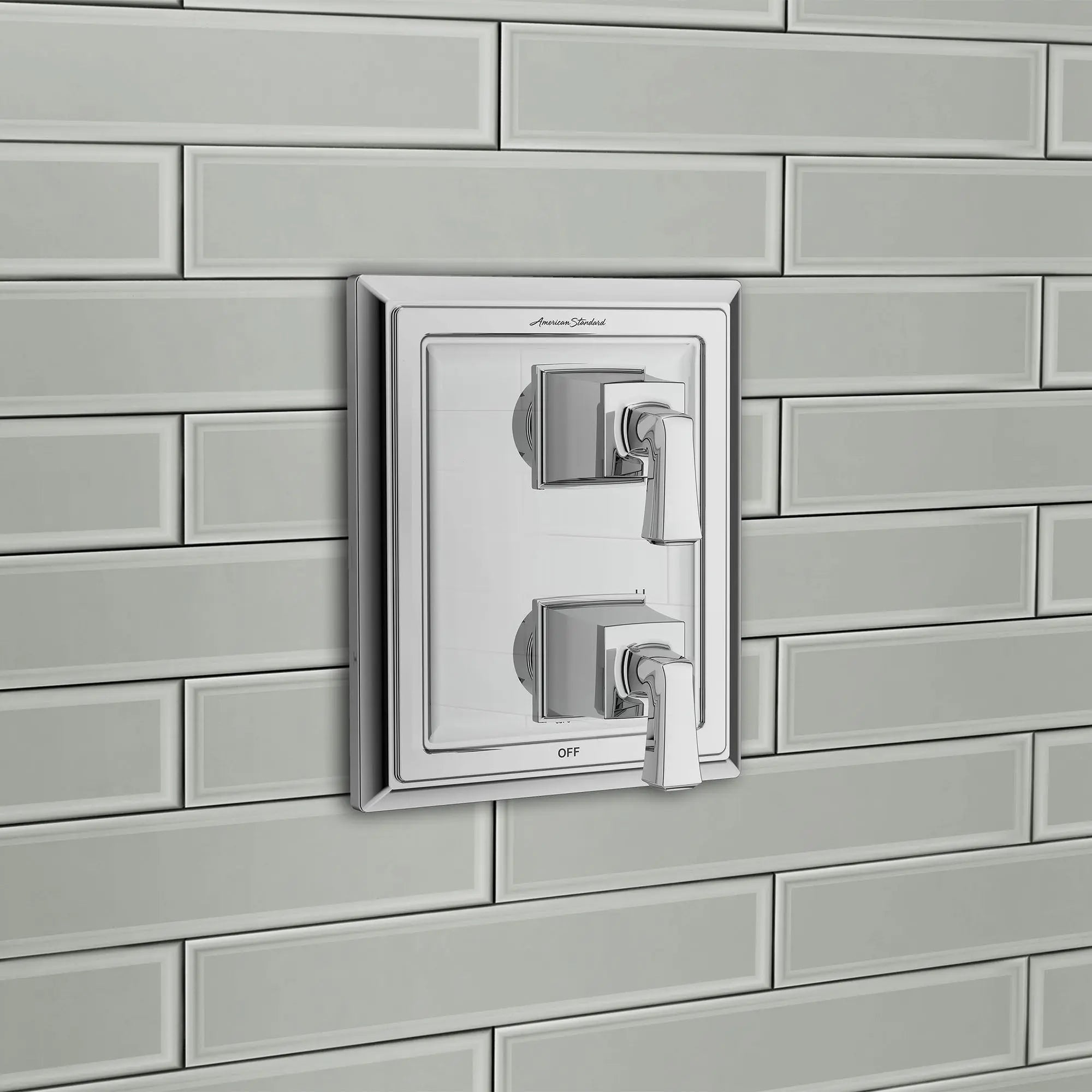 The Town Square S 2-Handle pressure balance Integrated Shower Diverter Trim by American Standard is an elegant solution for a more enjoyable shower. When paired with the exclusive Flash Rough-in Integrated Shower Diverter Valve, sold separately, you can easily alternate between water outlets. The Town Square S Trim is inspired by classic architectural shapes and crown molding to create a timeless look that enhances your bathroom and coordinates beautifully with the entire Town Square S collection. Requires Flash Rough-in Integrated Shower Diverter Valve RU520.