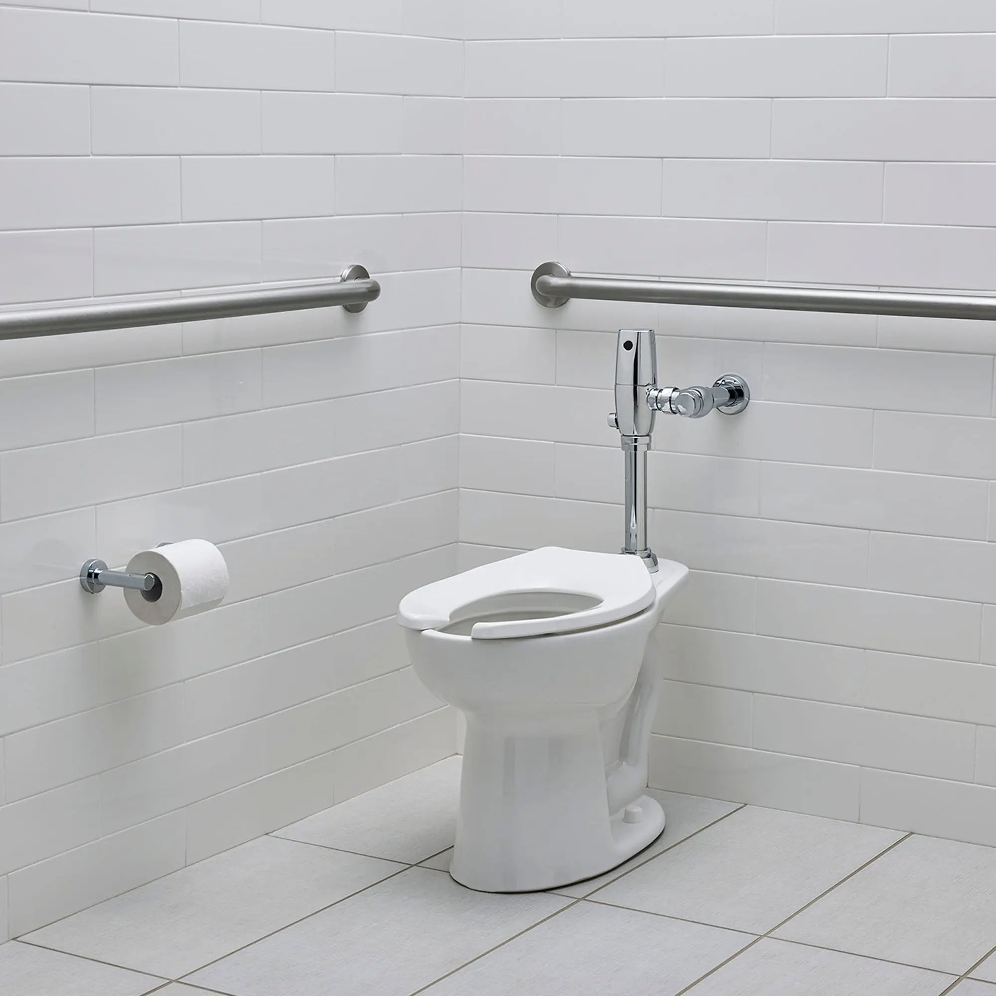 The Exposed Selectronic Toilet Flush Valve is now capable of meeting ADA clearance requirements when installed under a grab-bar that is installed at 36” height from the floor to the top of the bar. The self-cleaning piston design saves time and money by eliminating routine maintenance and preventing the valve from running due to clogs.Features CR-P2 lithium battery installed. Battery Life: 4 years assuming 4,000 flushes per month Touch-free operation helps keep the restroom clean and hygienic Self-cleaning piston significantly reduces clogging and prevents valve run-on Integral wiper spring cleans the refill orifice with every flush for extraordinary reliability No Routine Maintenance: no diaphragms to replace; no filters to clean Selectronic Proximity System with programmable sensor allows for easy adjustment and customization State-of-the-Art Electronics prevent ghost flushing Fully Mechanical Manual Override Button can flush the valve without power Fail-Safe: Valve automatically closes upon loss of power or water pressure and does not need to be reset Adjustable Sanitary Flush cleans the fixture & maintains the trap seal. Chemical Resistant EPDM Seals for extended life Can be installed left or right handedSpecs 11-1/2” Rough in Fits 1-1/2" top spud bowlsSustainability CALGreen Compliant