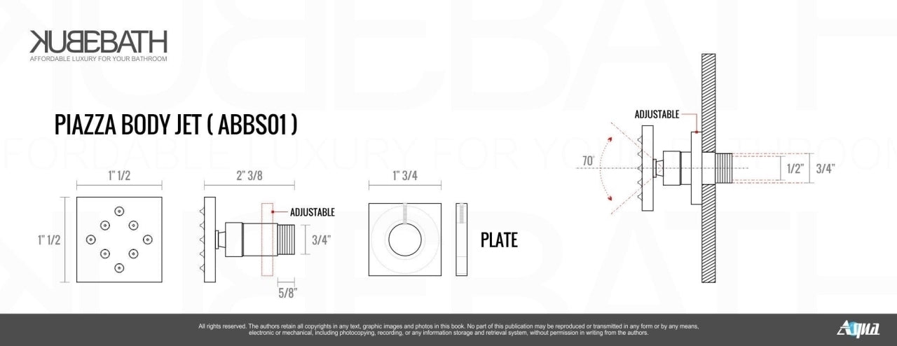 Kube Bath Aqua Piazza Black Shower Set With 8" Ceiling Mount Square Rain Shower, Tub Filler and 4 Body Jets The Aqua Piazza Collection takes pure and simple geometric forms and composes them into an expression of modern luxury. The unapologetic angularity of the faucet is juxtaposed by a flow of water that is surprisingly laminar and gentle. Aqua Piazza is the product of an intimate cooperation between design and German Engineering.