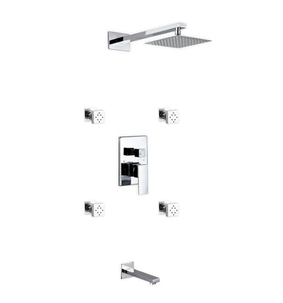 Kube Bath Aqua Piazza Brass Shower Set With 8" Square Rain Shower, 4 Body Jets and Tub Filler Chrome