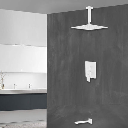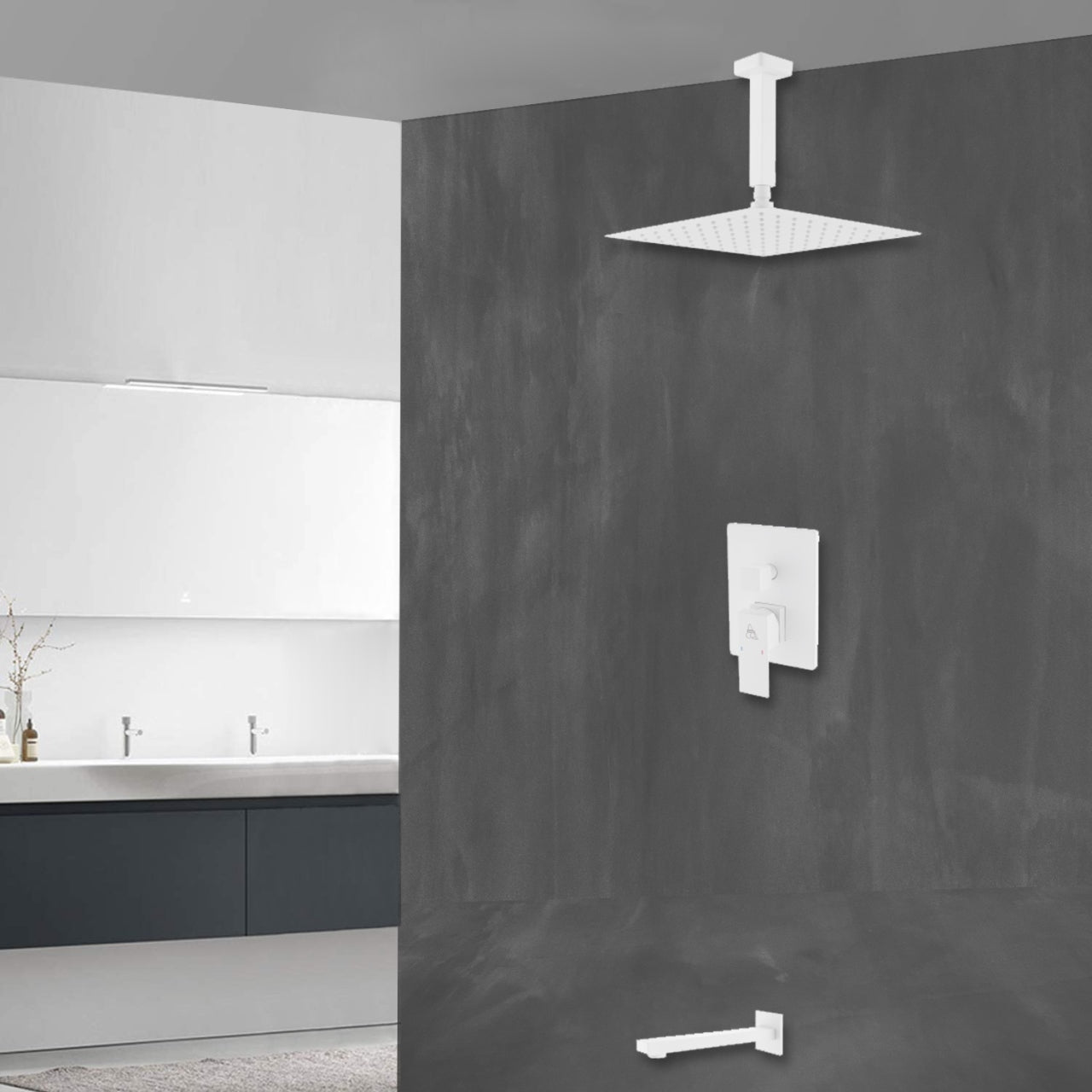 Kube Bath Aqua Piazza White Shower Set W/ 12" Ceiling Mount Square Rain Shower And Tub Filler
