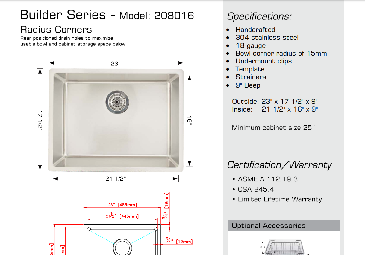 Bosco 208016 Builder Series Stainless Steel Kitchen Sink