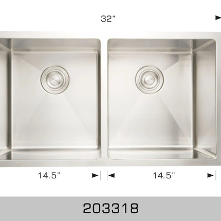 Bosco Deluxe Series 32″ x 18″ Radius Corner Kitchen Sink 203318