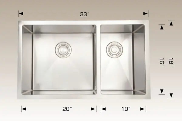 Bosco Deluxe Series Plus 33″ x 18″ Radius Corner Kitchen Sink 203322L Plus