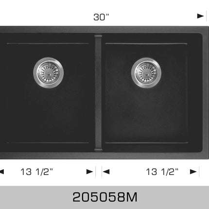 Bosco Granite Series 30" x 18" Double Bowl Kitchen Sink Undermount 205058M
