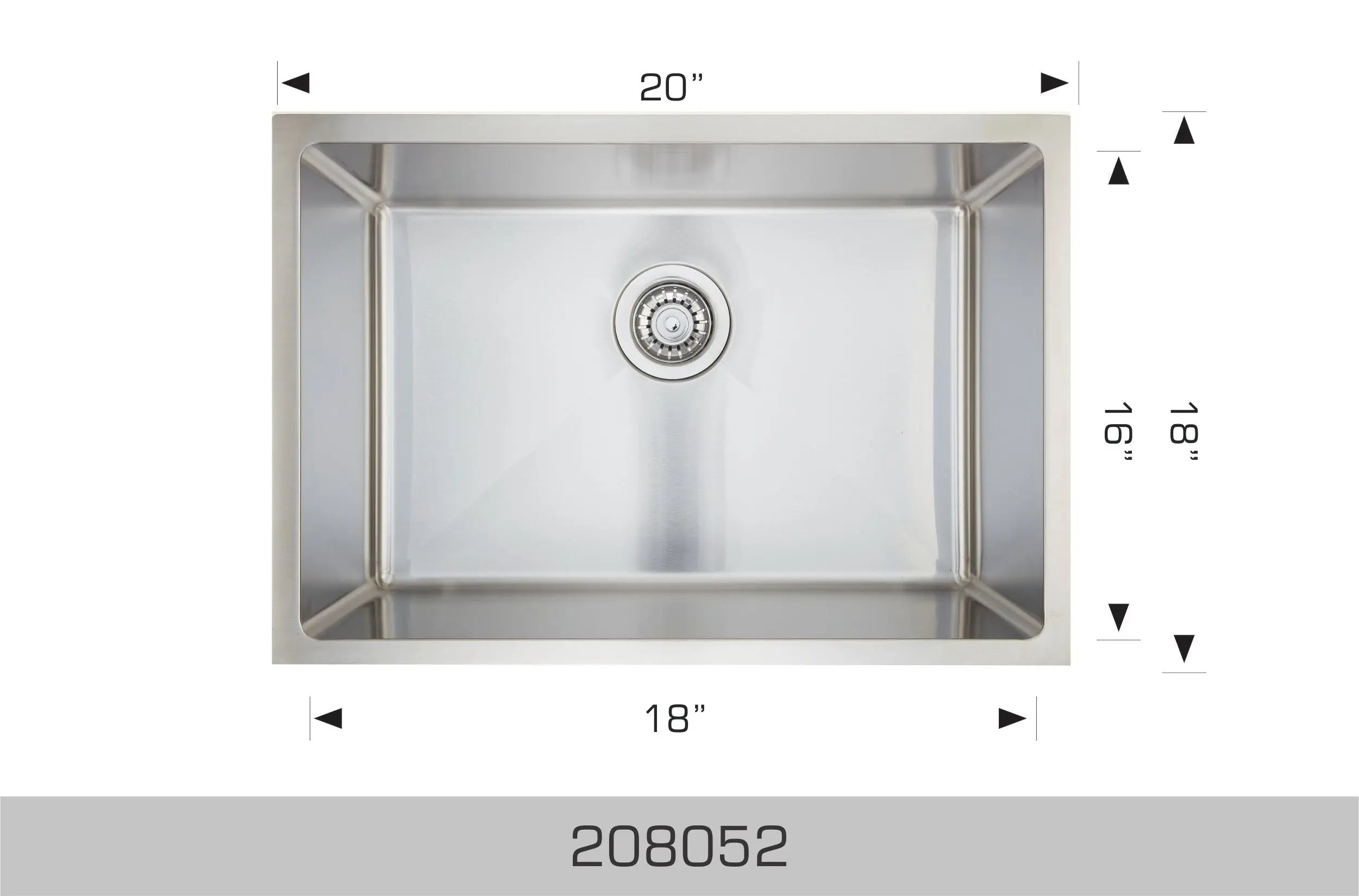 Bosco Super Series 20" x 18" Single Bowl Kitchen Sink Radius Corner 208052
