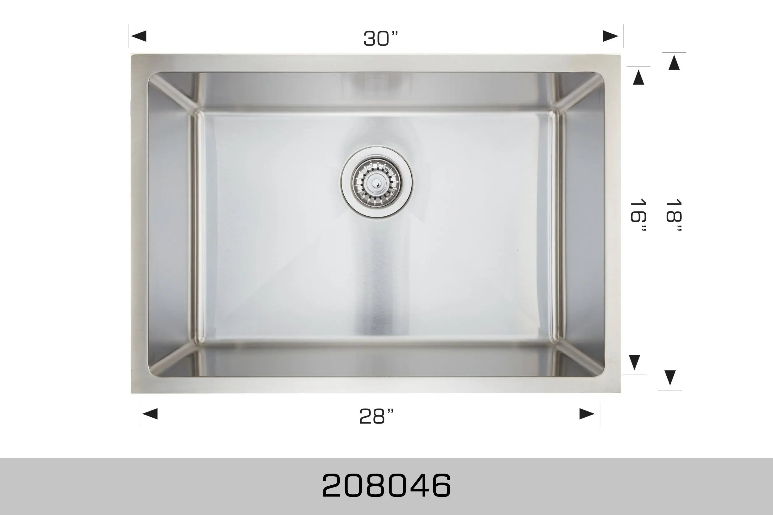 Bosco Super Series 30" x 18" Single Bowl Kitchen Sink Radius Corner 208046