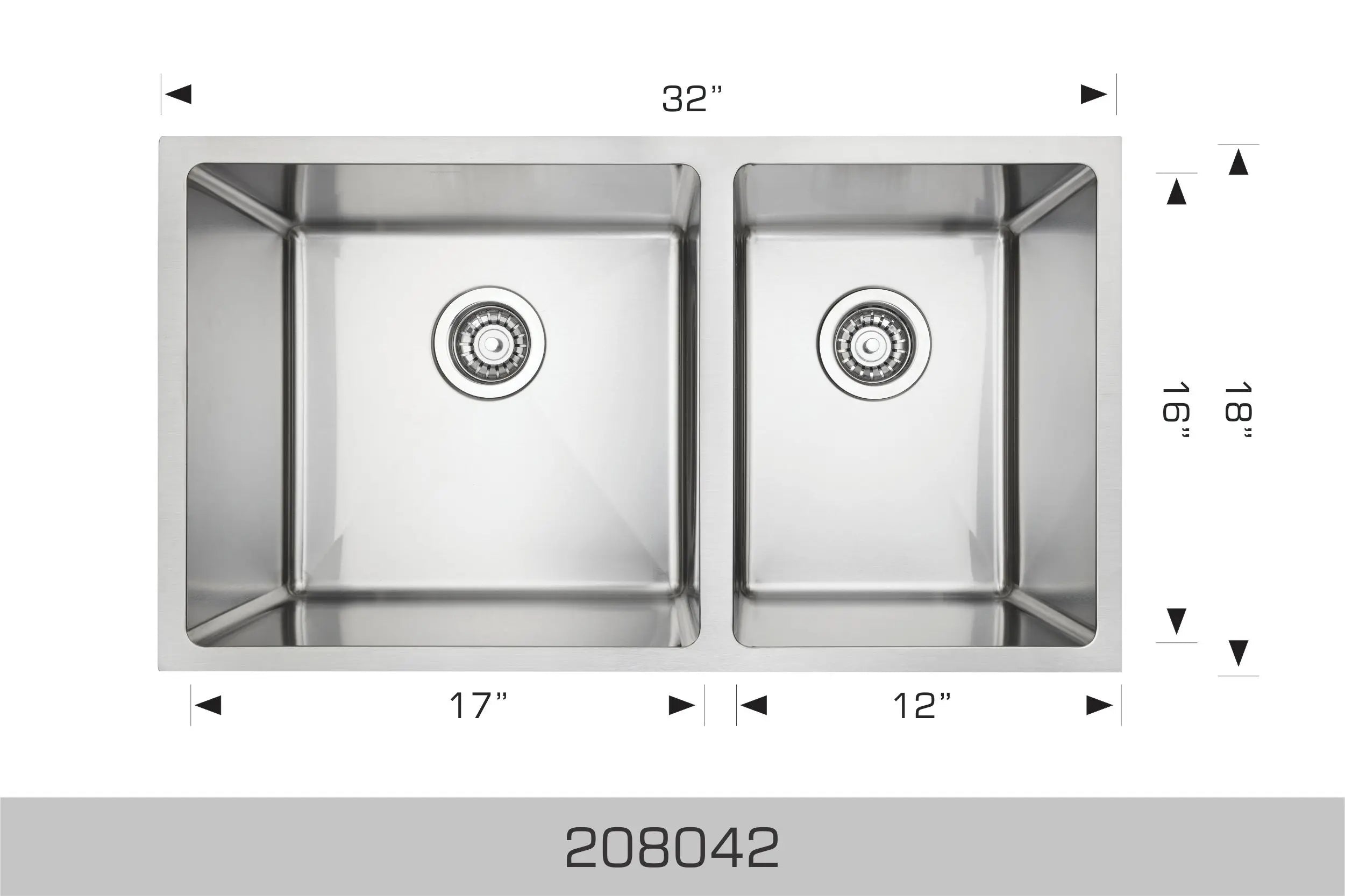 Bosco Super Series 32" x 18" Radius Corner Kitchen Sinks 208042