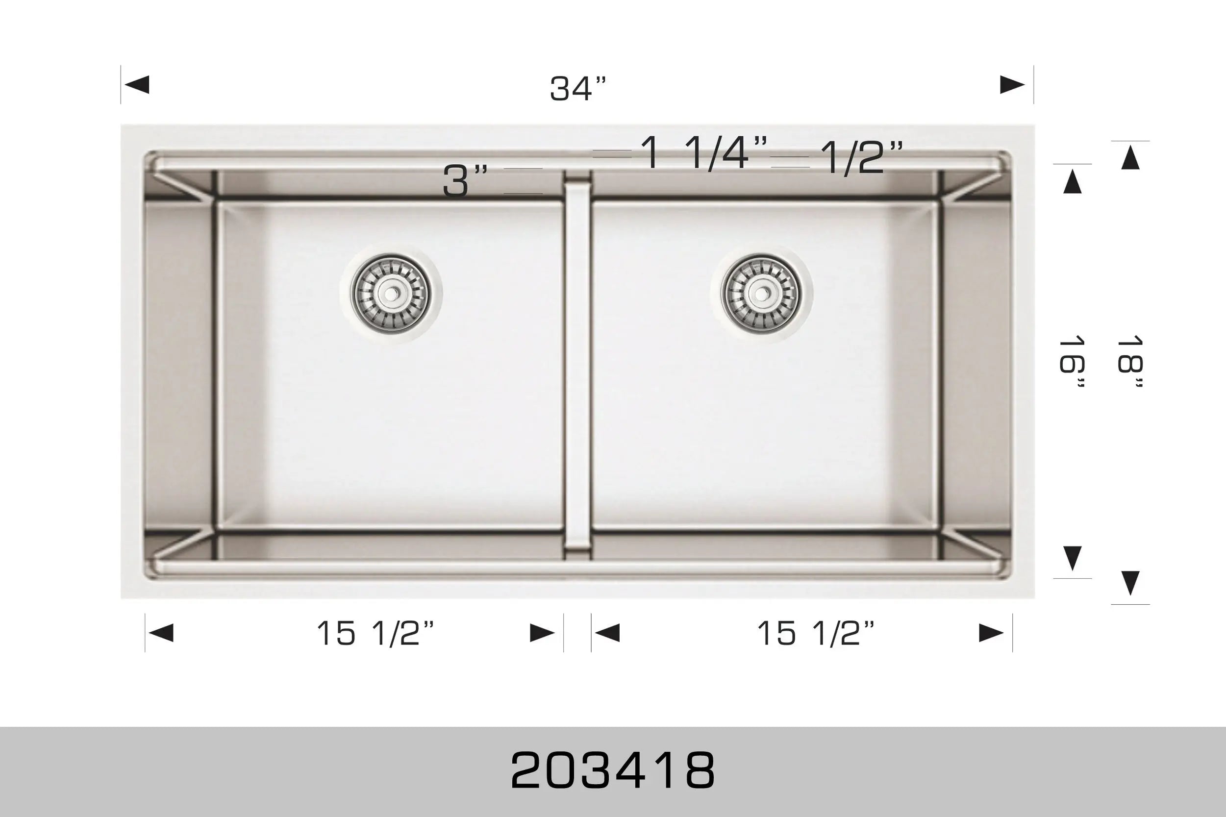 Bosco Titanium Plus Series 34" x 18" Double Bowl Kitchen Sink Radius Corner 203418