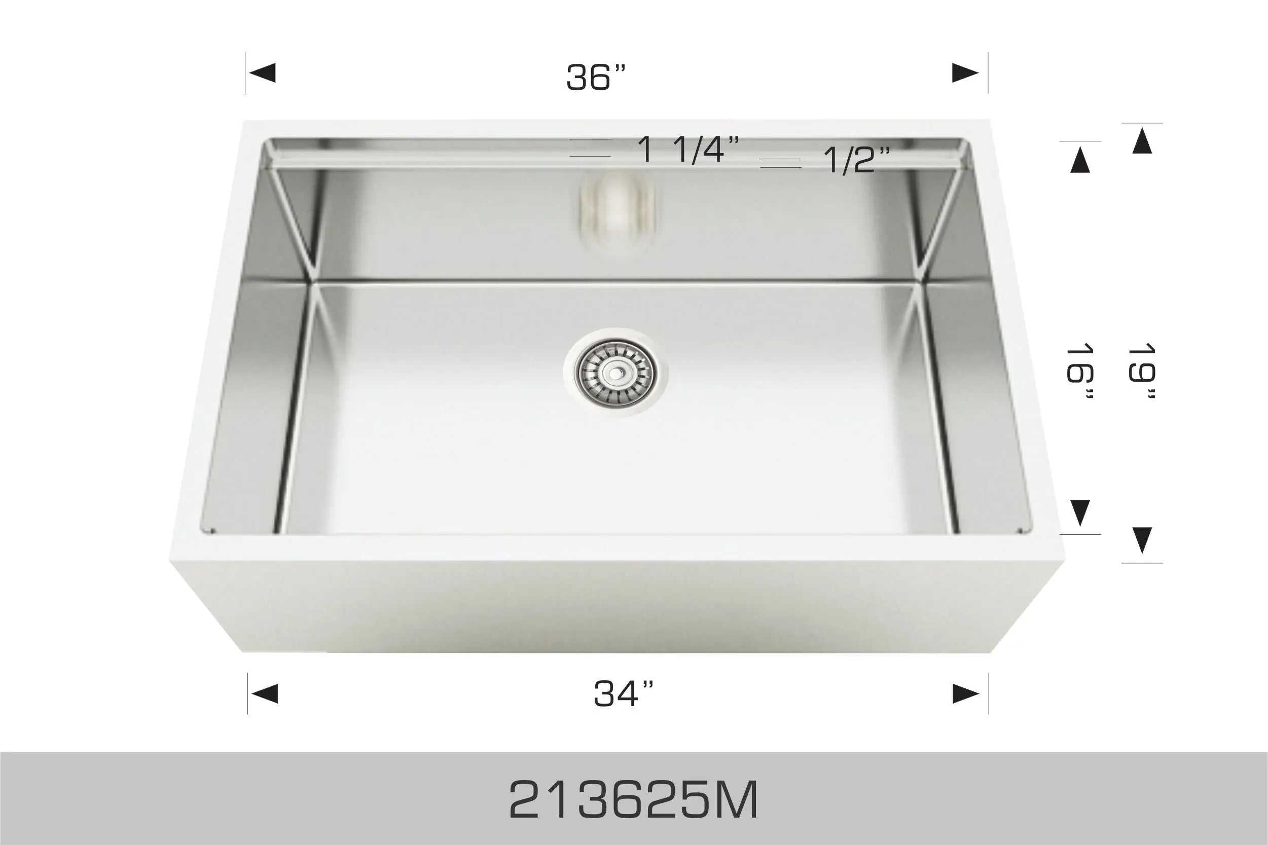Bosco Titanium Plus Series 36″ x 19″ Apron Radius Corner Kitchen Sink 213625M