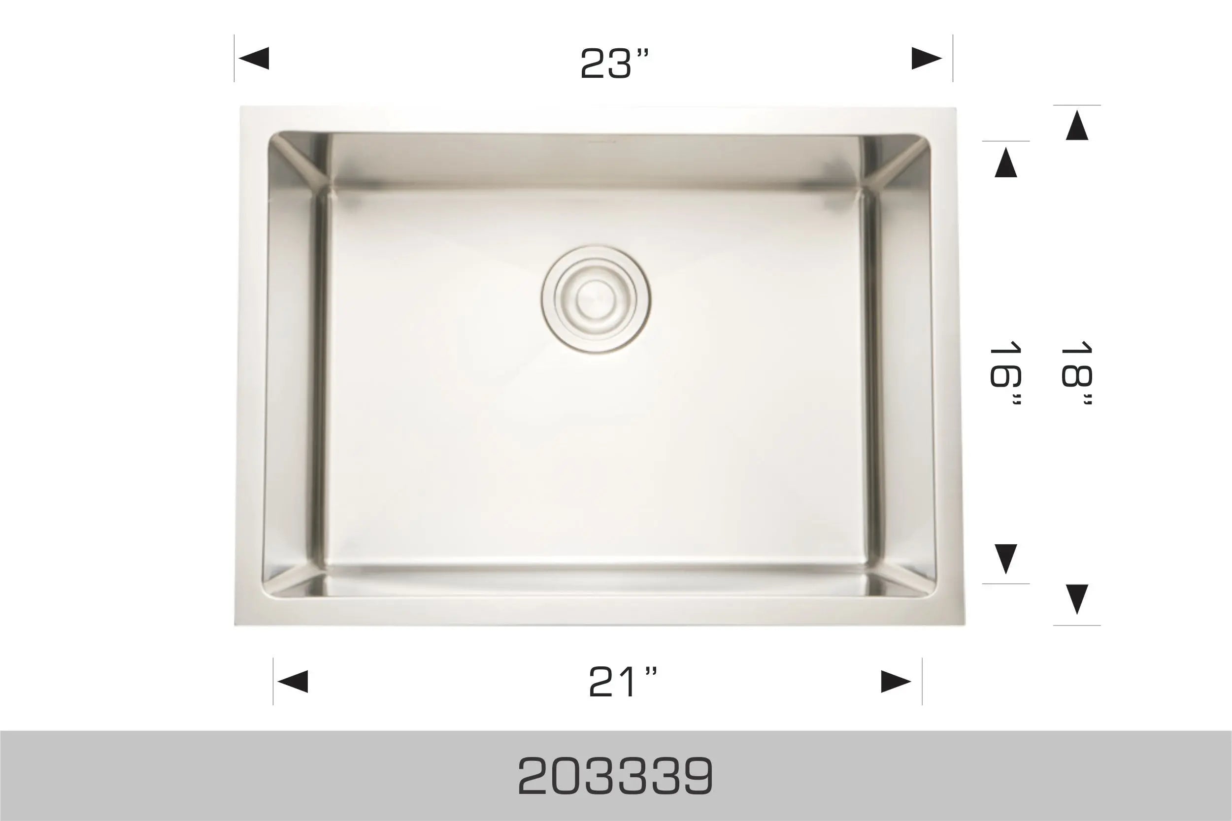 Bosco Titanium Series 23" x 18" Single Bowl Kitchen Sink Radius Corner 203339