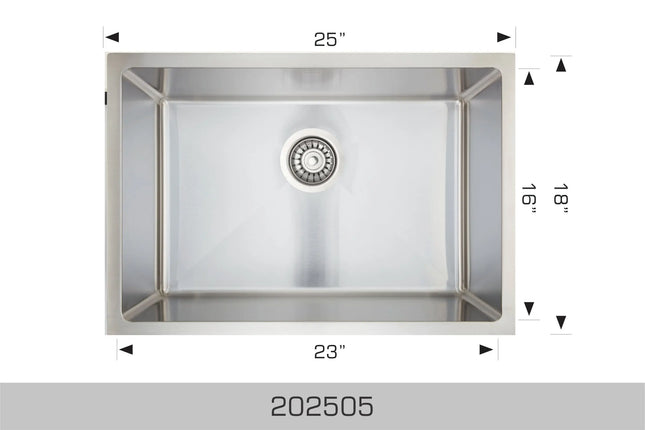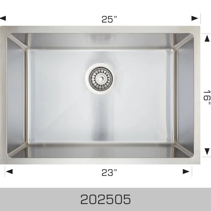 Bosco Universal Design Series 25" x 18" Single Bowl Kitchen Sink Radius Corner 202505