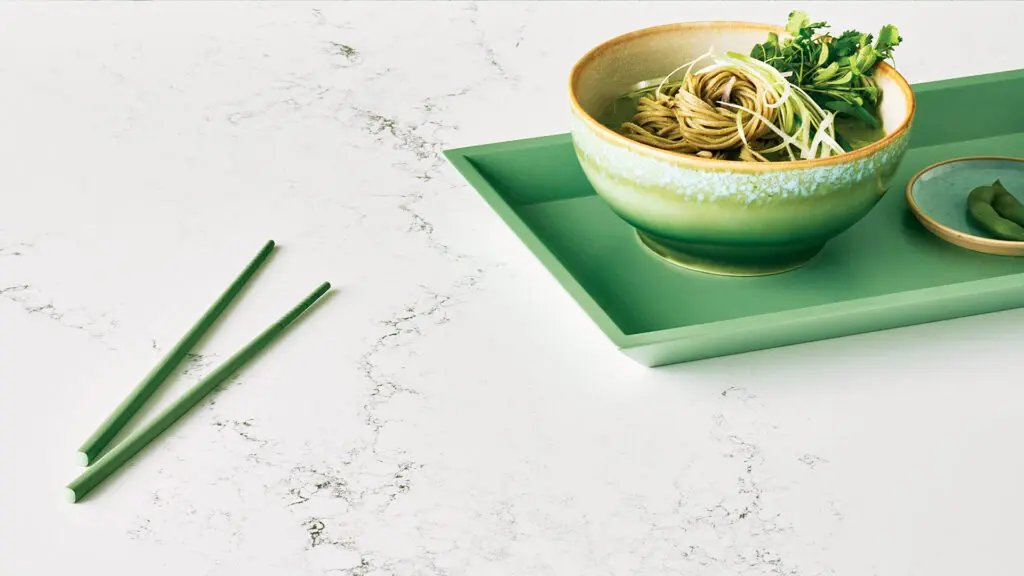 Caesarstone 5151 Empira White Polished White Quartz with Subtle Veining