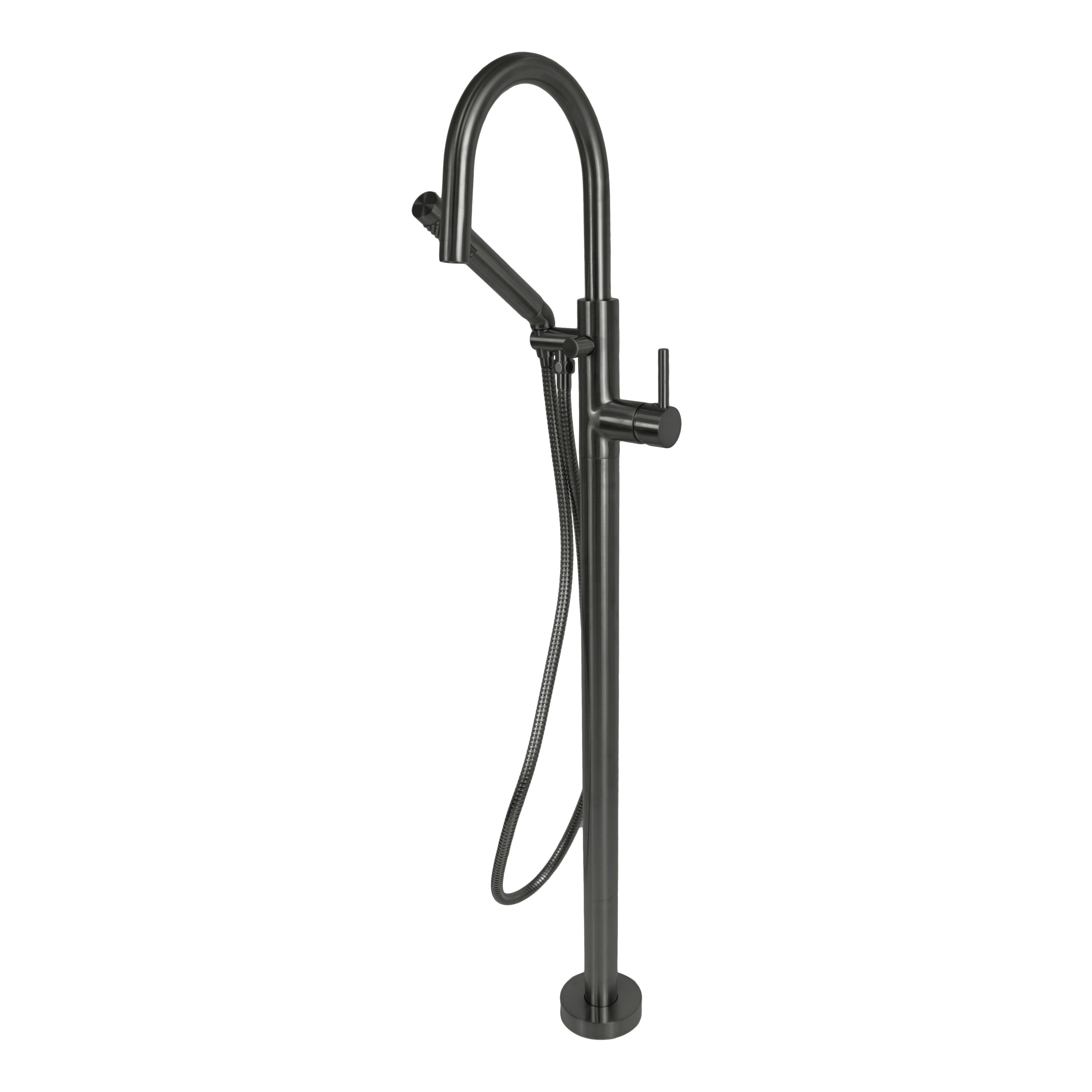 Enhance the allure of your bathroom with the Cleo Elegante Freestanding Bathtub Faucet, a manifestation of modern design with a timeless flair. Crafted from solid lead-free brass, this faucet is adorned with a 7-layer plated finish, ensuring resistance against corrosion, tarnish, and rust, making it a perfect addition to any bathing sanctuary.