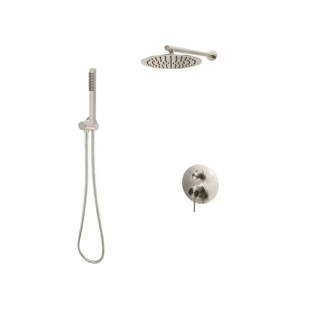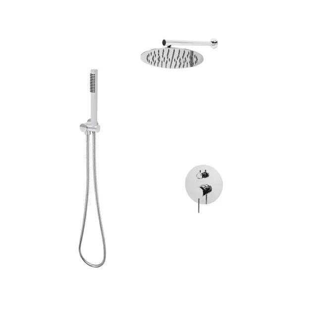Cleo Elegante Two Way Pressure Balanced System - Kit 2 The F54114 shower system combines sleek geometric design with modern luxury, making it an ideal addition to any contemporary powder room ensemble. Crafted from solid brass, its clean-lined structure not only enhances the aesthetic appeal but also ensures durability and longevity.