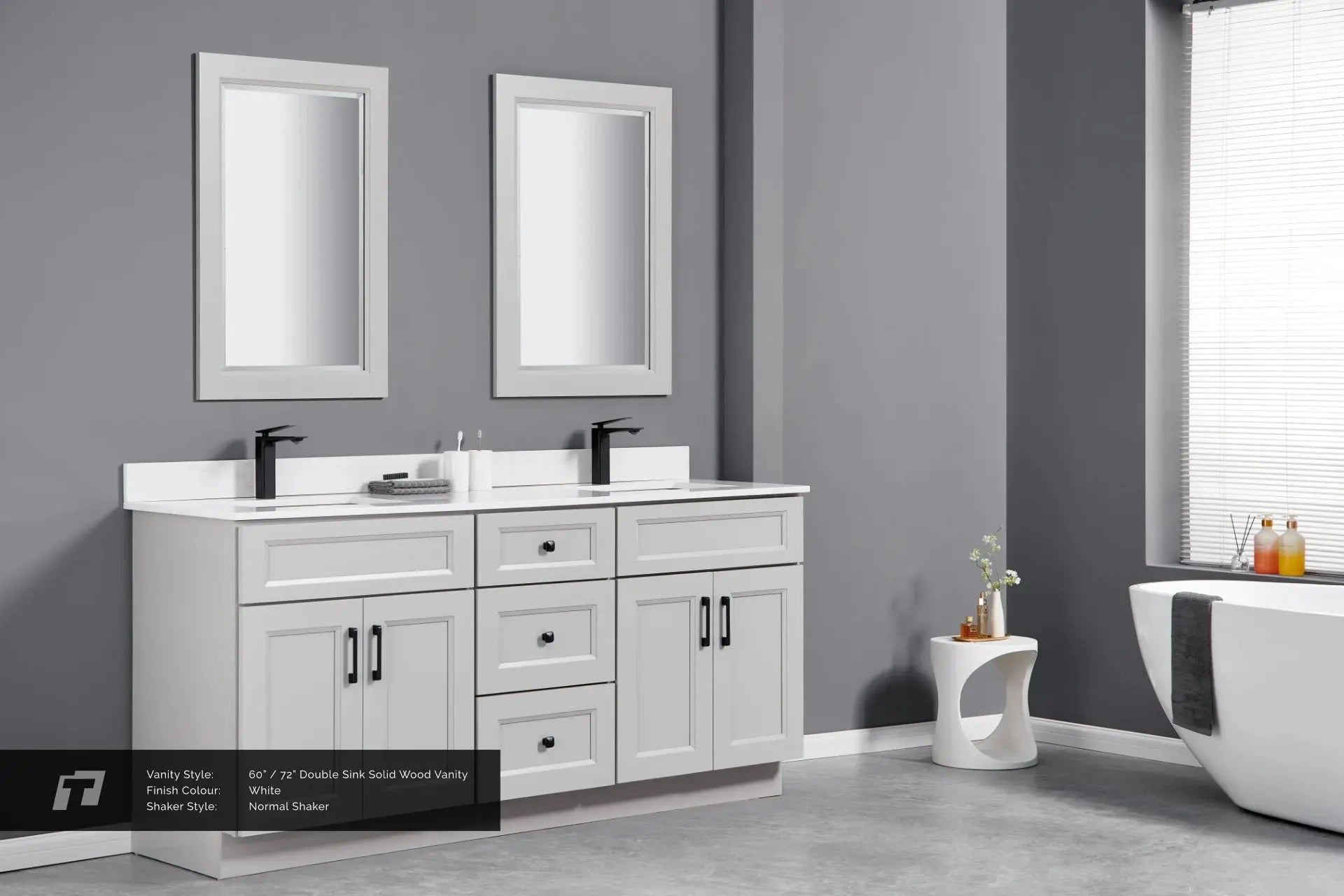 Cleo Hampton 60" Bevel Shaker Double Sink Solid Wood Bathroom Vanity With Countertop