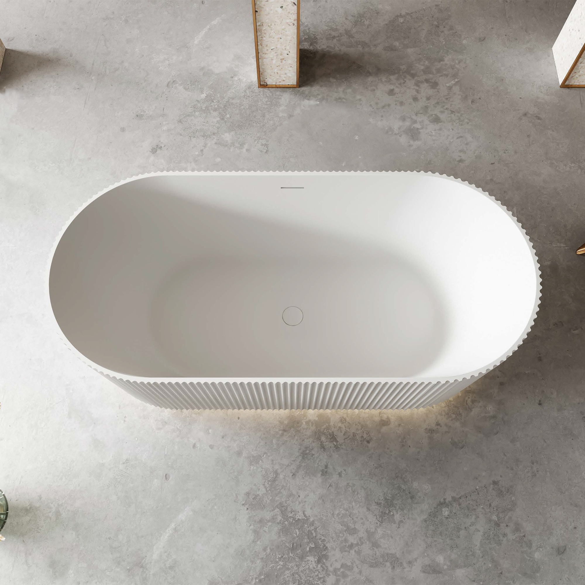 The arched detail creates a significant drop shadow, which gives the impression of a floating bathtub.
