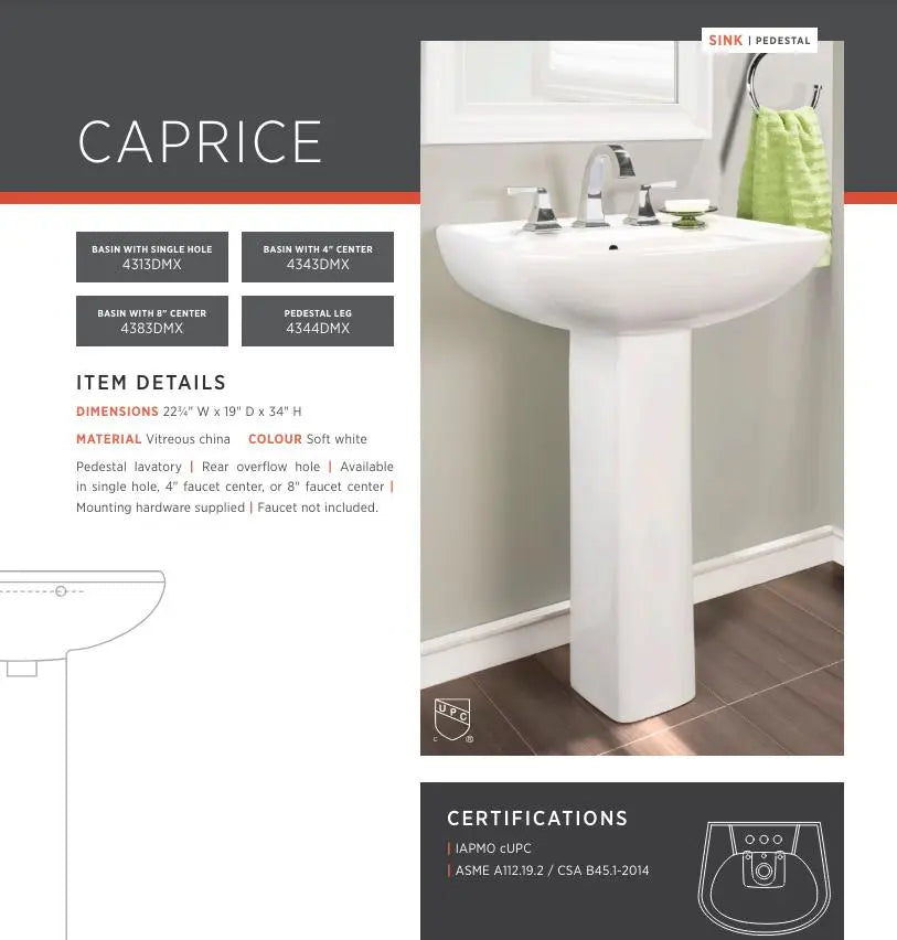 Contrac Caprice Pedestal Sink TOP With Single Hole (Sink Only)