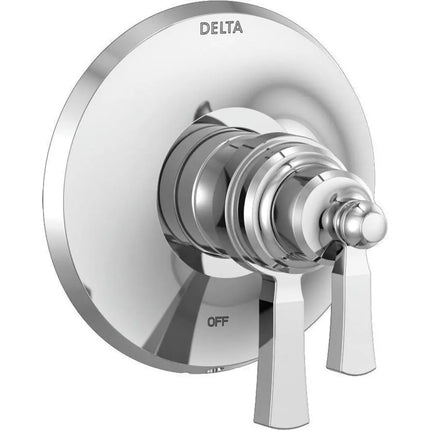 The Dorval Bathroom Collection diverges from conventional expectations with regal accents and a powerful design that commands your attention. Inspired by the feminine lines of French architecture and the regal stature of German castles, the Dorval Bath Collection balances grace and power in this modern take on new traditional design. With separate handles for volume and temperature control, this Delta tub/shower provides a more refined showering experience. Simply set the water at your preferred temperature and turn the shower on or off with the volume control handle - without interrupting your set temperature. Delta thermostatic valves use TempAssure Technology to protect you and your family from sudden temperature changes. Delta pressure-balance valves use Monitor Technology to protect you and your family from sudden temperature changes.
