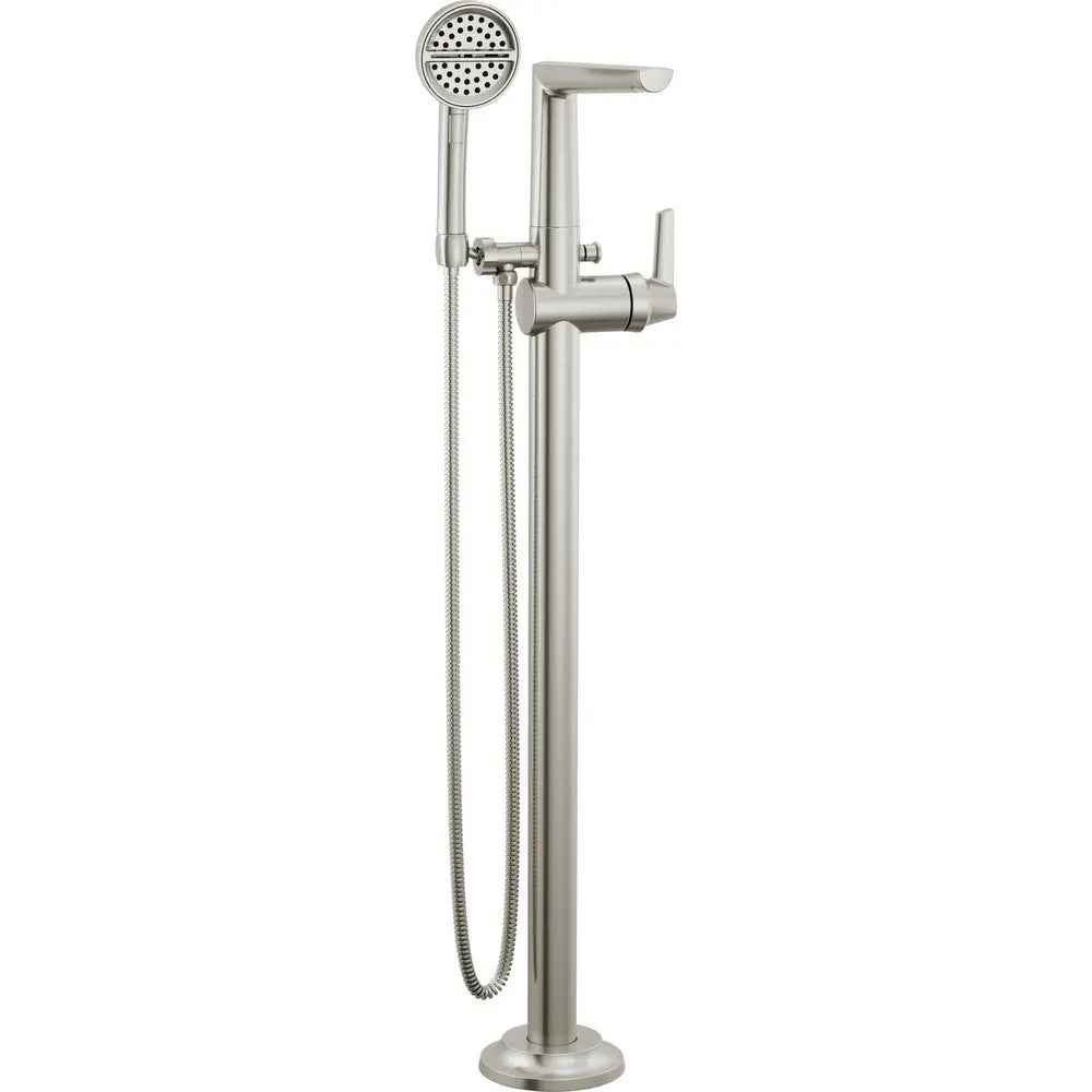 With a design inspired by the shape of sailboats, the Galeon Bath Collection brings a chiseled, contemporary look into the bath. Make a statement in your bath with a floor mount tub filler ' an elegant complement to any freestanding bathtub. The included hand shower makes this a versatile addition to your bath, perfect for rinsing off, washing loved ones and pets, or keeping your tub clean. Our WaterSense labeled hand showers use at least 20% less water than the industry standard ' helping you save water without compromising performance. You can install with confidence, knowing that Delta faucets are backed by our Lifetime Limited Warranty.