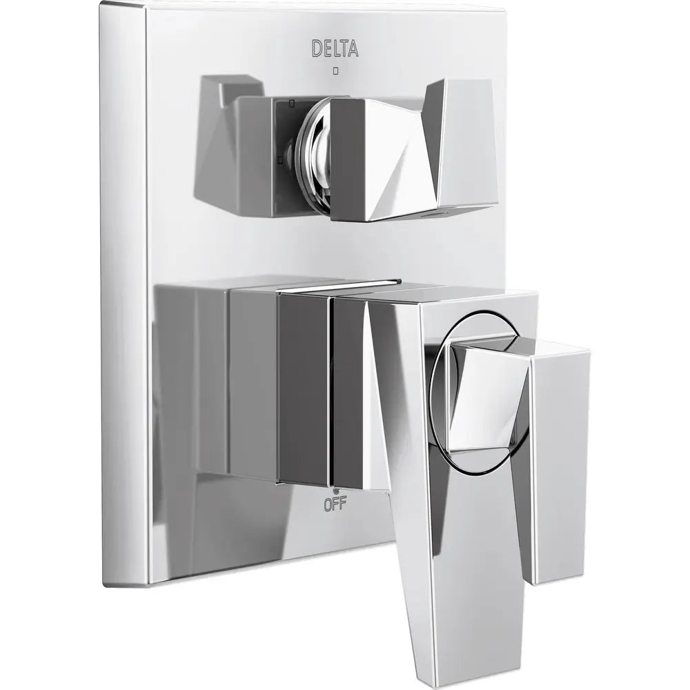The prismatic faceting of the Trillian Bath Collection is an evolution of modern style that creates an edgy look which catches the light as well as the eye. Delta showers with Monitor pressure-balance valves are engineered to make sure you don't experience a sudden and possibly unsafe change in water temperature as a result of running water elsewhere, such as using a dishwasher, flushing a toilet or running a washing machine. By integrating separate controls on one trim with the MultiChoice Integrated Shower Diverter, we've streamlined installation and your shower style. With the MultiChoice Universal system, you have the freedom to upgrade style and functionality later. And, because there's no need to alter plumbing behind the wall, you save time, effort and money on future renovation updates. With separate volume and temperature control on this model, simply set the water at your preferred temperature and turn the shower on or off with the volume control handle ' without interrupting your set temperature. You can install with confidence, knowing that Delta showers are backed by our Lifetime Limited Warranty.