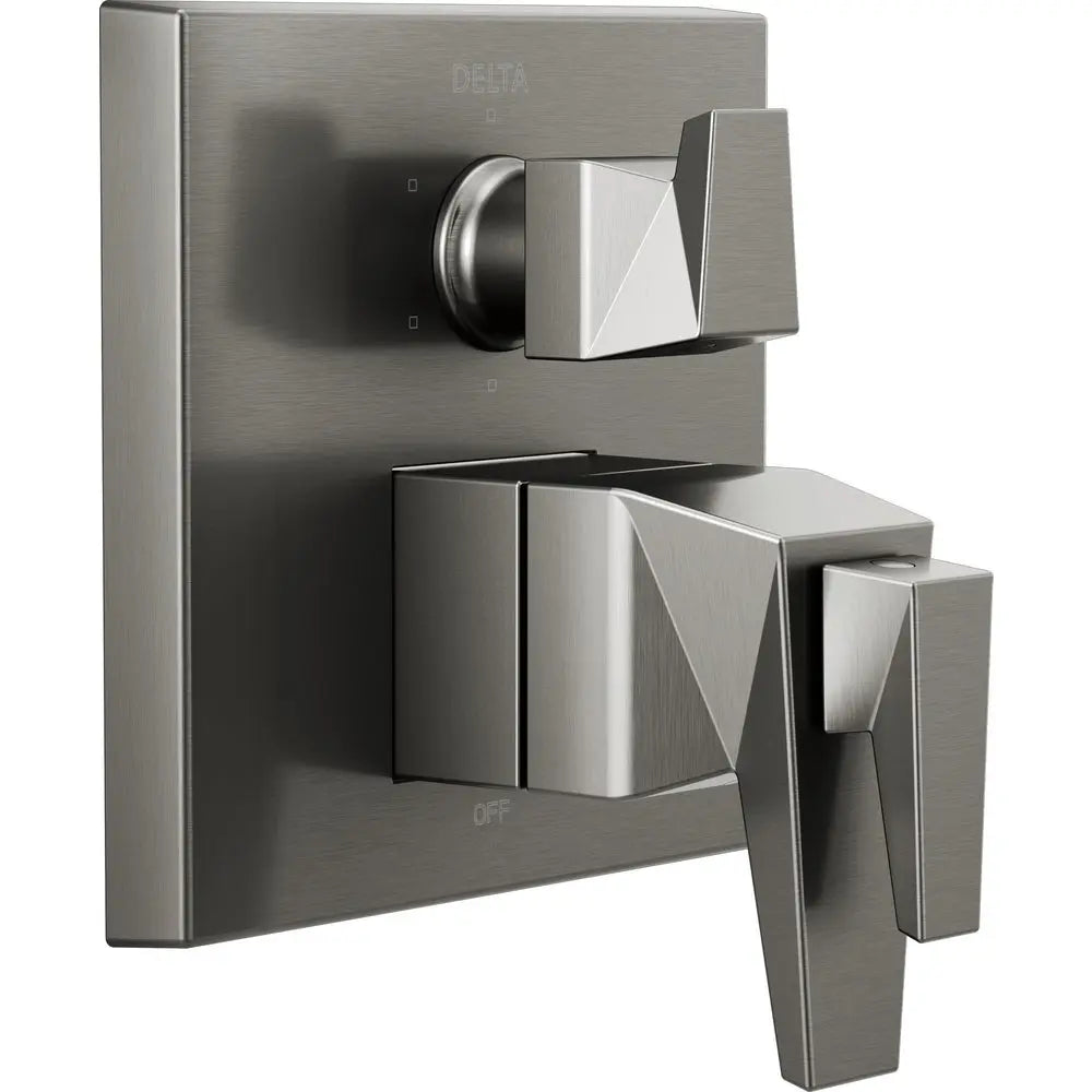The prismatic faceting of the Trillian Bath Collection is an evolution of modern style that creates an edgy look which catches the light as well as the eye. Delta showers with TempAssure thermostatic valves are engineered to make sure you don't experience a sudden and possibly unsafe change in water temperature as a result of running water elsewhere, such as using a dishwasher, flushing a toilet or running a washing machine. By integrating separate controls on one trim with the MultiChoice Integrated Shower Diverter, we've streamlined installation and your shower style. With the MultiChoice Universal system, you have the freedom to upgrade style and functionality later. And, because there's no need to alter plumbing behind the wall, you save time, effort and money on future renovation updates. With separate volume and temperature control on this model, simply set the water at your preferred temperature and turn the shower on or off with the volume control handle ' without interrupting your set temperature. You can install with confidence, knowing that Delta showers are backed by our Lifetime Limited Warranty.