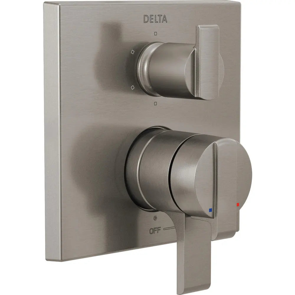 The Delta MultiChoice Integrated Shower Diverter consolidates custom shower design with its consumer-preferred streamlined style eliminating the need for an additional diverter valve. The angular modern style is boldly contemporary, featuring crisp lines for an upscale feel. With three popular style choices to coordinate with any bathroom décor, it provides you the flexibility to select the type of custom shower functionality you prefer. With the MultiChoice Universal system, you have the freedom to upgrade style and functionality later. And, because there's no need to alter plumbing behind the wall, you save time, effort and money on future renovation updates.