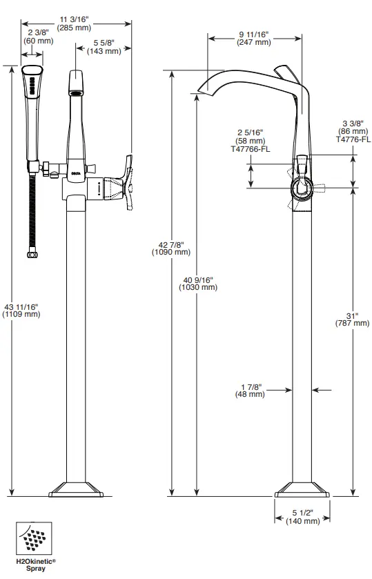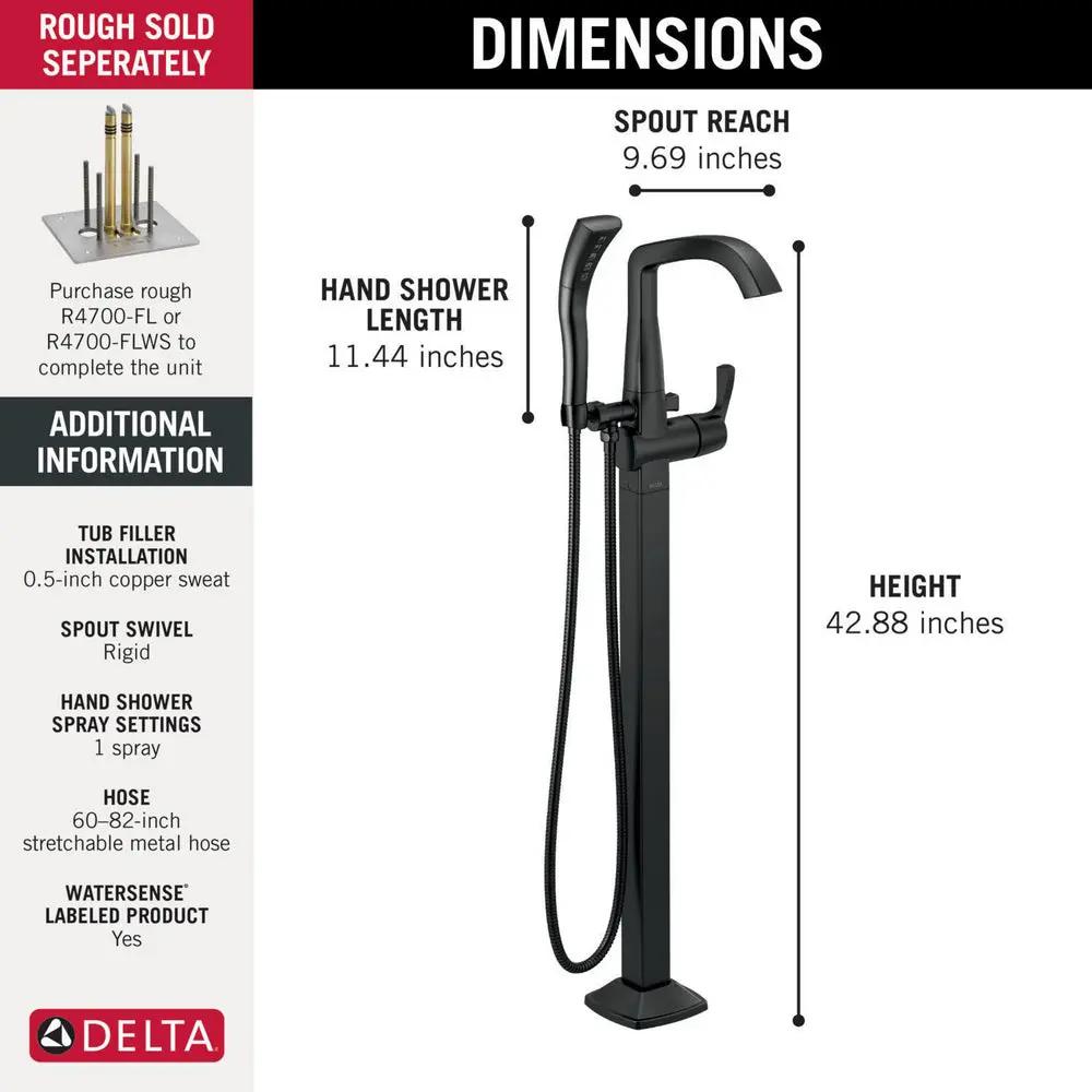Delta STRYKE Single Handle Floor Mount Tub Filler Trim T4776