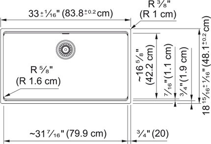 33.0-in. x 18.94-in. Franke Granite Single Bowl Kitchen Sink. Maris sinks are equipped with deep capacity bowls that can easily fit baking trays, pots, and pans to be washed with maximum ease. With our easy-to-use integrated ledge system, you’ll accomplish more with your sink while making the most of your surrounding counter space. Our integrated antimicrobial Sanitized technology helps reduce odors and ensures safe protection against bacteria and mildew in your sink. The rear drain maximizes the usable surface of the bowl and creates extra cabinet space beneath the sink. Maris granite sinks are scratch-resistant, fade-resistant, and impact resistant and will retain their new appearance for years. Sink strainer assembly included.