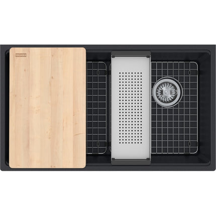 Franke Maris 33-in. x 19.3-in Granite Undermount Single Bowl Workcenter Kitchen Sink Onyx