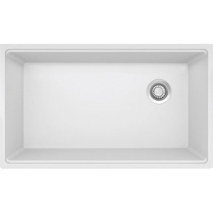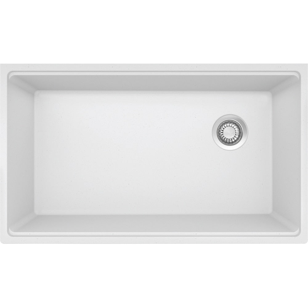 33-in. x 19.3-in. Onyx Granite Undermount Single Bowl Workcenter Kitchen Sink. Hardworking and well equipped, the Maris granite workcenter sink has everything you need to create a multi-functional workspace in your kitchen. Optimize every inch of your sink with accessories to wash food, chop, prep, clean up, dry dishes, and more. Made from impact-resistant granite enhanced with Sanitized, which prevents germs from growing, this workcenter sink is a perfect choice for busy family homes. ACCESSORIES INCLUDED: Bottom Grid, Cutting Board, Colander and Strainer Basket