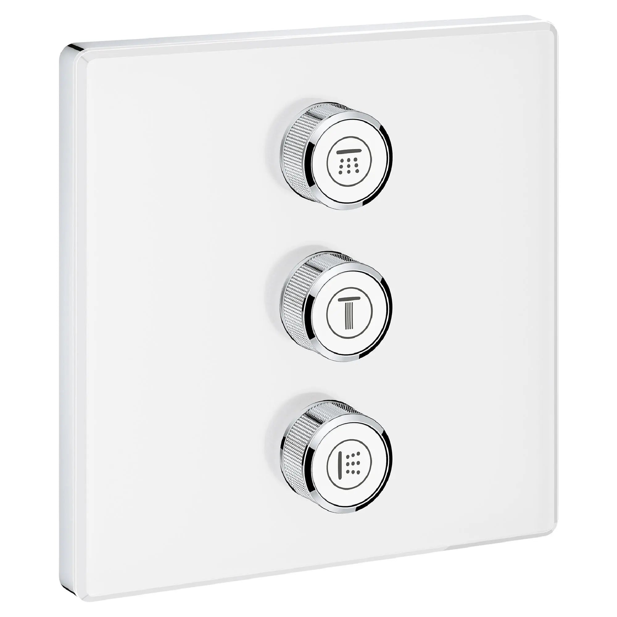Control your bath or shower with ease, using a simple push-turn action, with as many options as you have water outlets – bath, shower, hand shower, even side showers can be controlled via the neat Grohtherm SmartControl trim set. Combined with the Grohtherm SmartControl thermostat with one valve (29140EN0) this trim set gives you total freedom of choice: you can control up to four outlets for your ideal shower or bath configuration, giving you more choices of spray and water source selection and combination. Innovative SmartControl technology allows you to select your desired spray source and adjust the water volume at the push-turn of a button. GROHE EasyLogic markings and textured buttons with exchangeable symbols make it easy and intuitive to use. Thanks to the GROHE QuickFix system it’s Swift and straightforward to install. The slim profile makes it easy to keep clean, and the stylish and durable GROHE StarLight chrome finish will look pristine for years to come. With a slim, square design perfect for that minimalist, streamlined look, this product is bound to enhance your bathroom scheme. Please note that this product must be installed in combination with the GROHE Rapido SmartBox (35601000) and Grohtherm SmartControl thermostat for concealed installation with one valve (29140EN0).