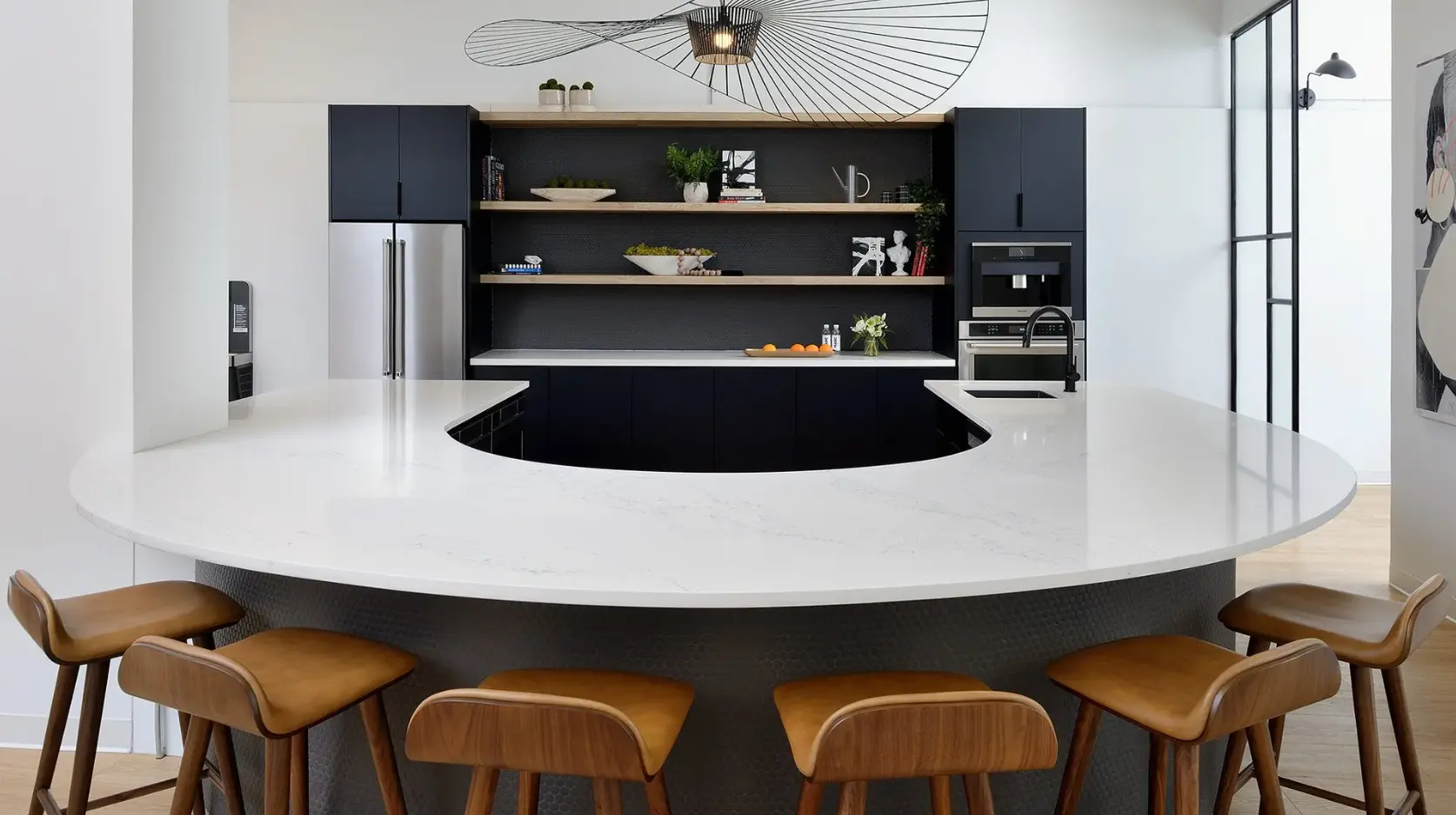 Hanstone Chantilly Crisp White Quartz with Feathery Charcoal Veins