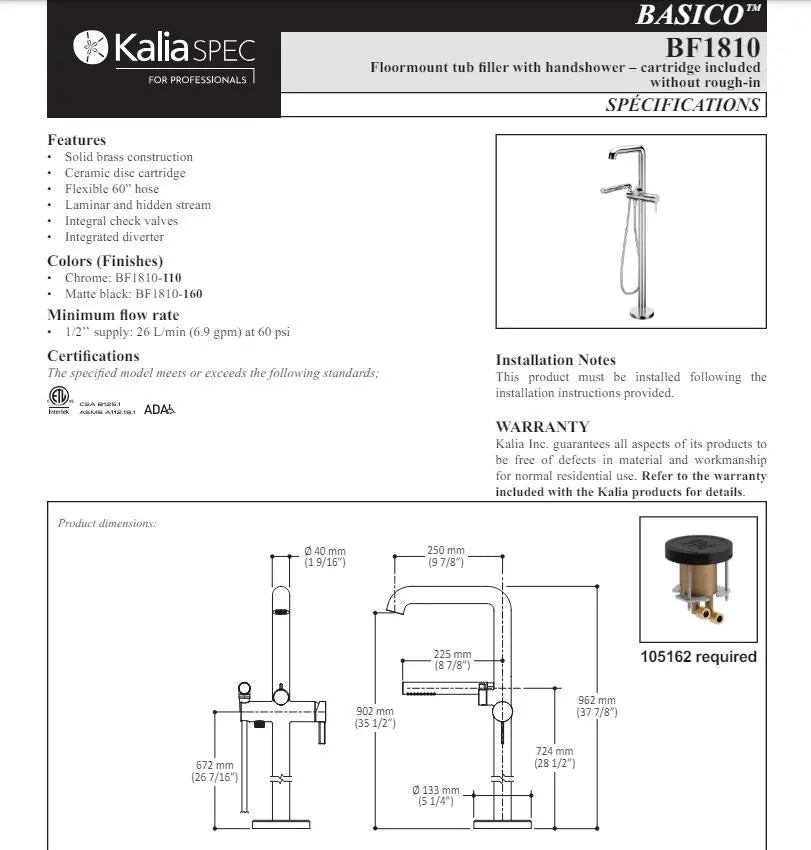 Kalia Basico Free Standing Bathtub Tub Filler With Hand Shower Trim