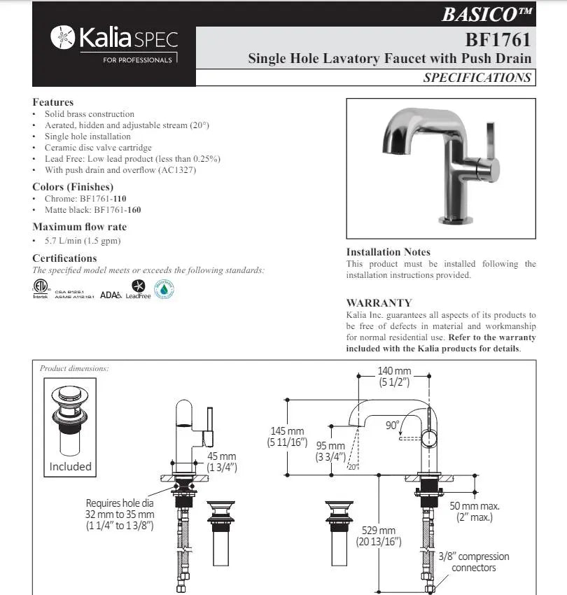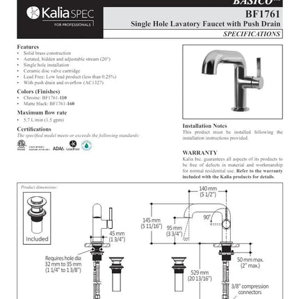 Kalia Basico Single Hole Bathroom Faucet With Pop Up Drain