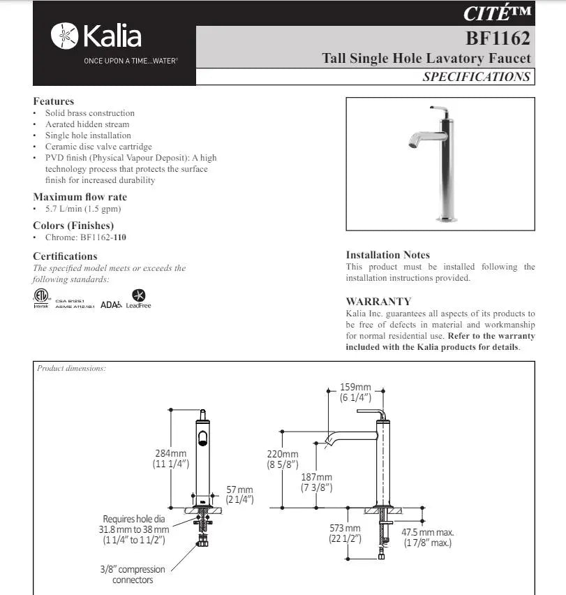 Kalia Cite Single Hole Bathroom Vessel Faucet With Pop Up Drain