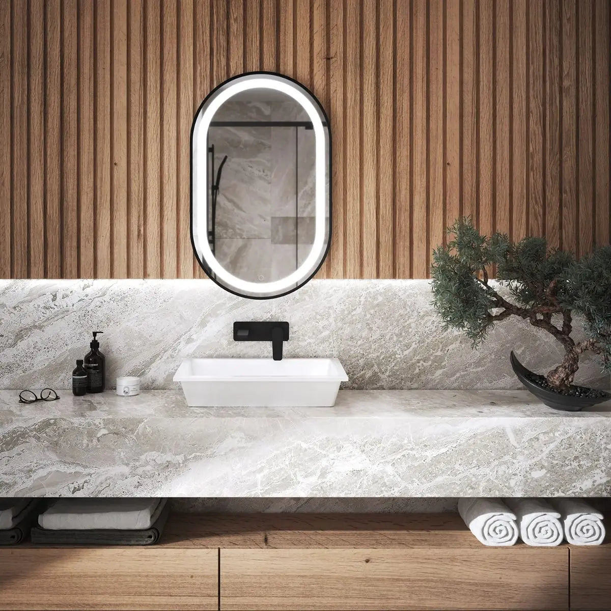 Kalia Effect 20 Inch LED Oval Shape Bathroom Mirror Black Frame