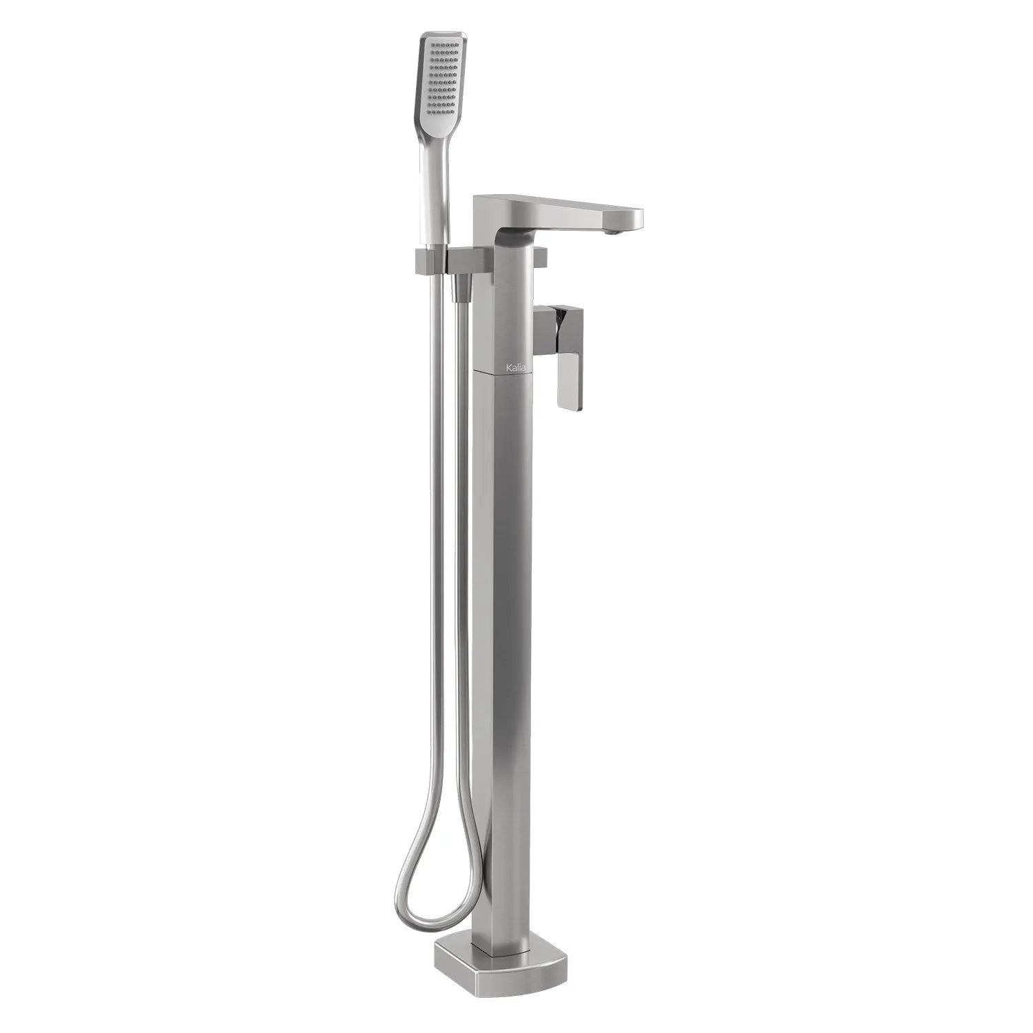 Kalia GRAFIK 39.5" Floor Mount Tub Filler with Hand Shower- Pure Nickel PVD