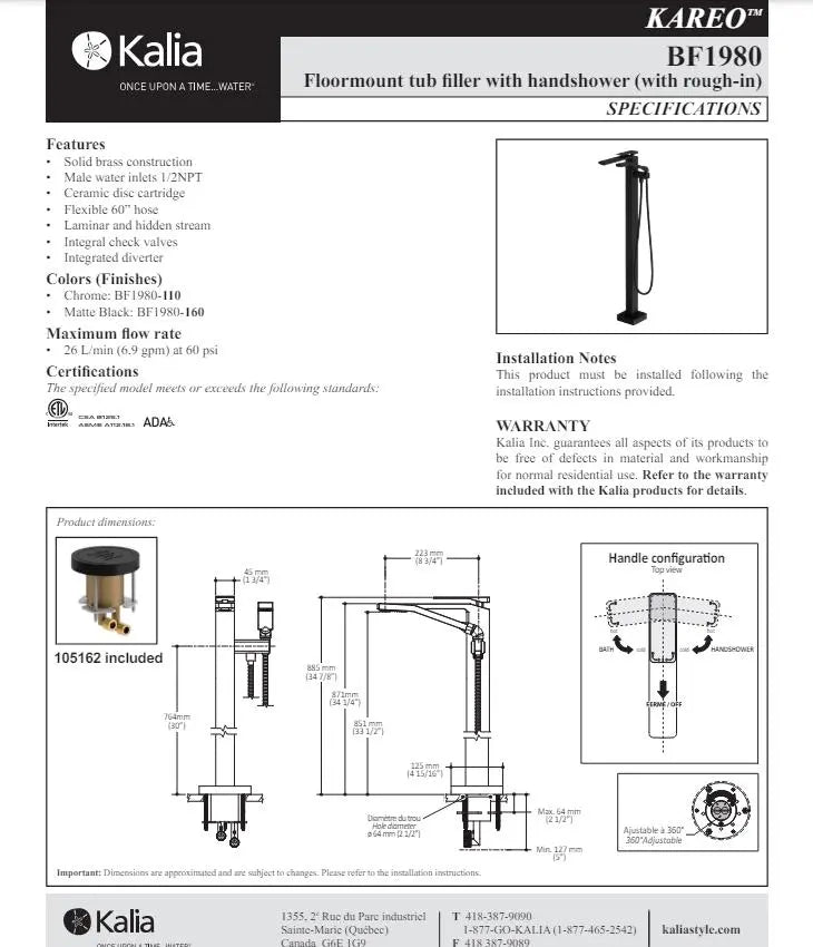 Kalia Kareo Free Standing Bathtub Filler Faucet With Hand Shower